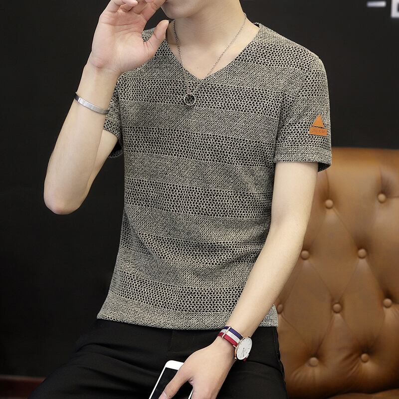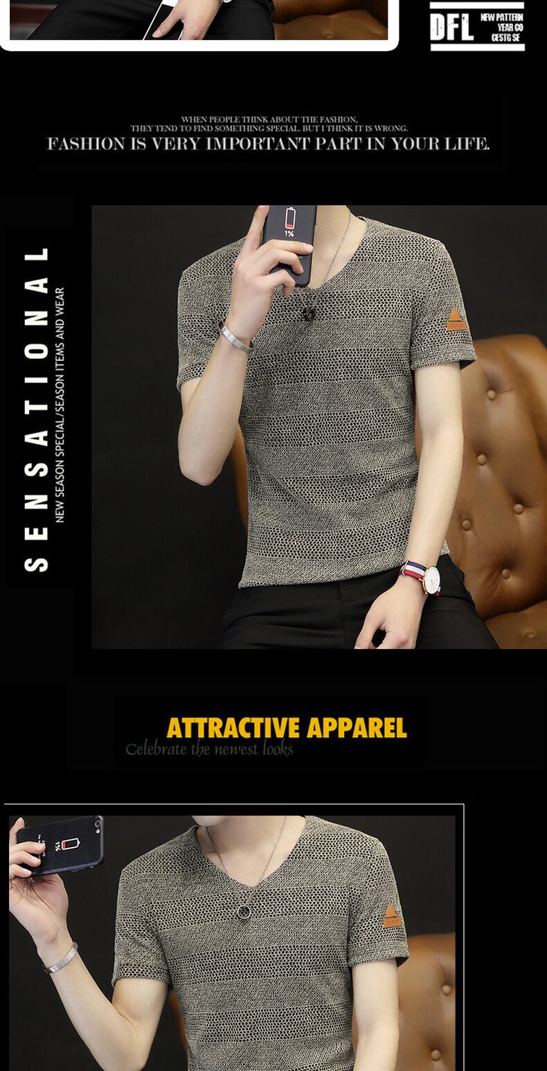 Men's ice silk knitted short-sleeved t-shirt men's 2022 new summer version slim half-sleeved hollow men's clothes サマー 夏物 スリム シルク Tシャツ doushi85551901017