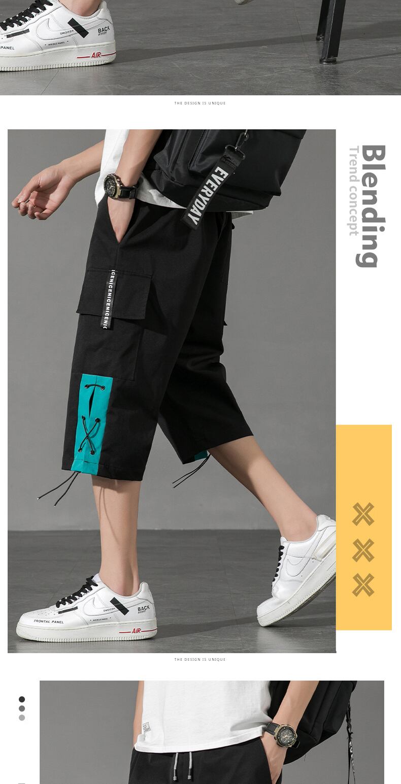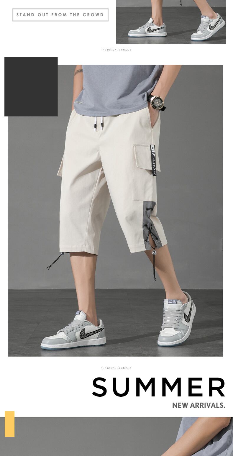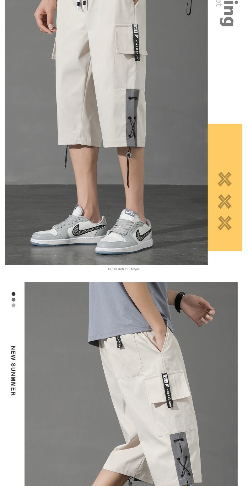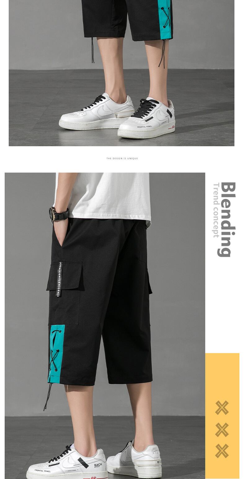 Overalls shorts men's ins tide brand explosion style loose cropped pants ese large pockets thin section straight beach big pants ビーチ ショーツ ブルマー doushi16401203176