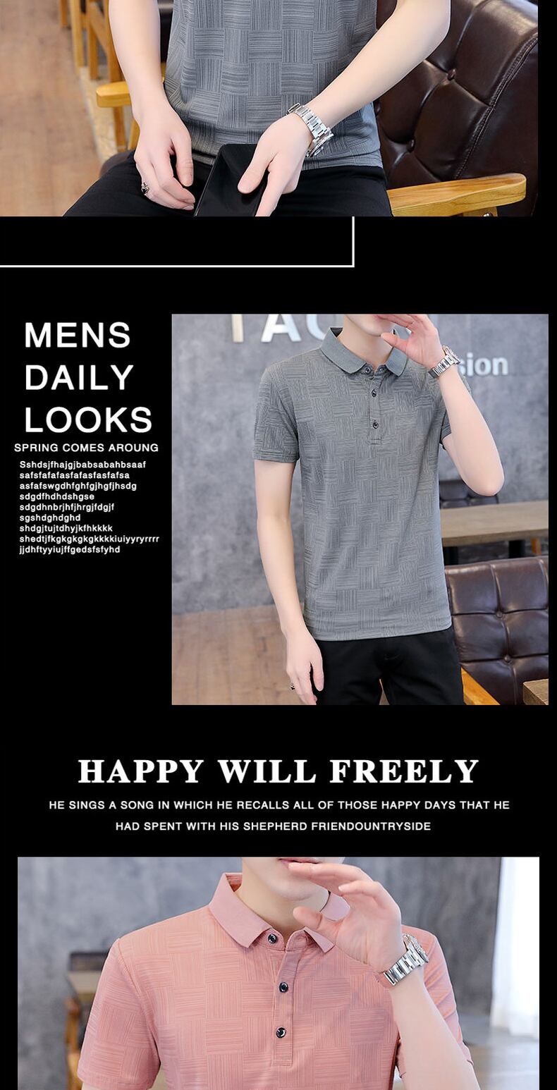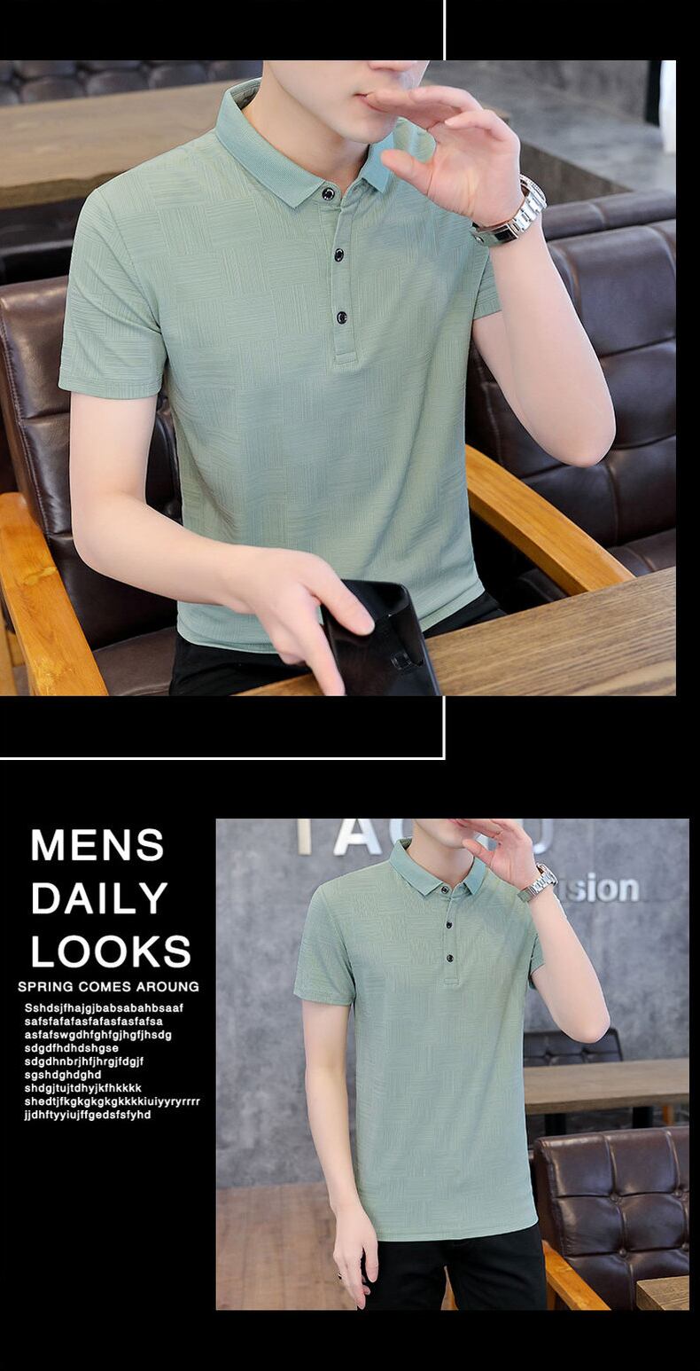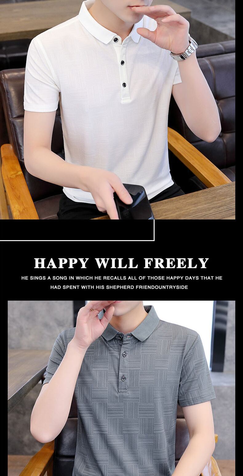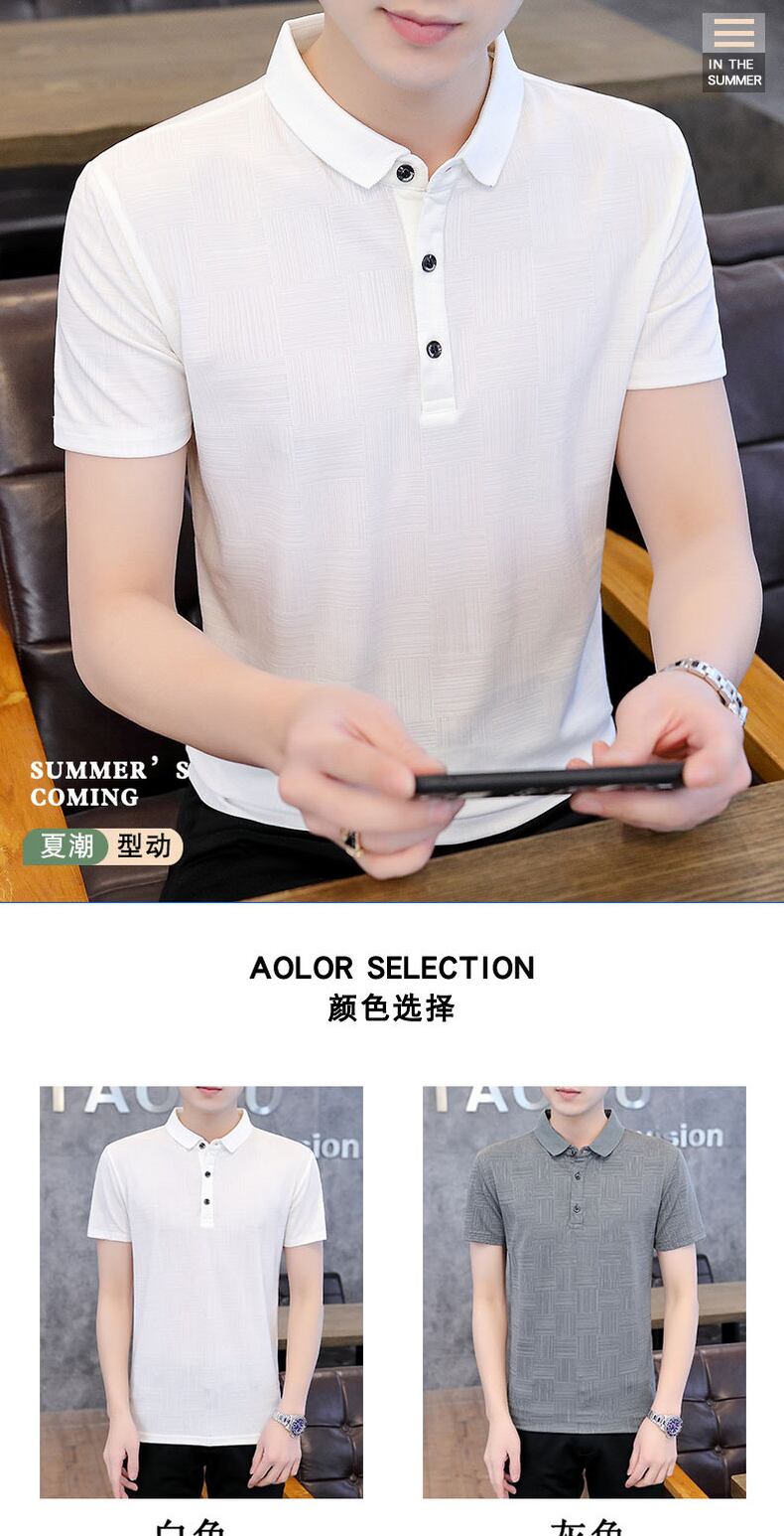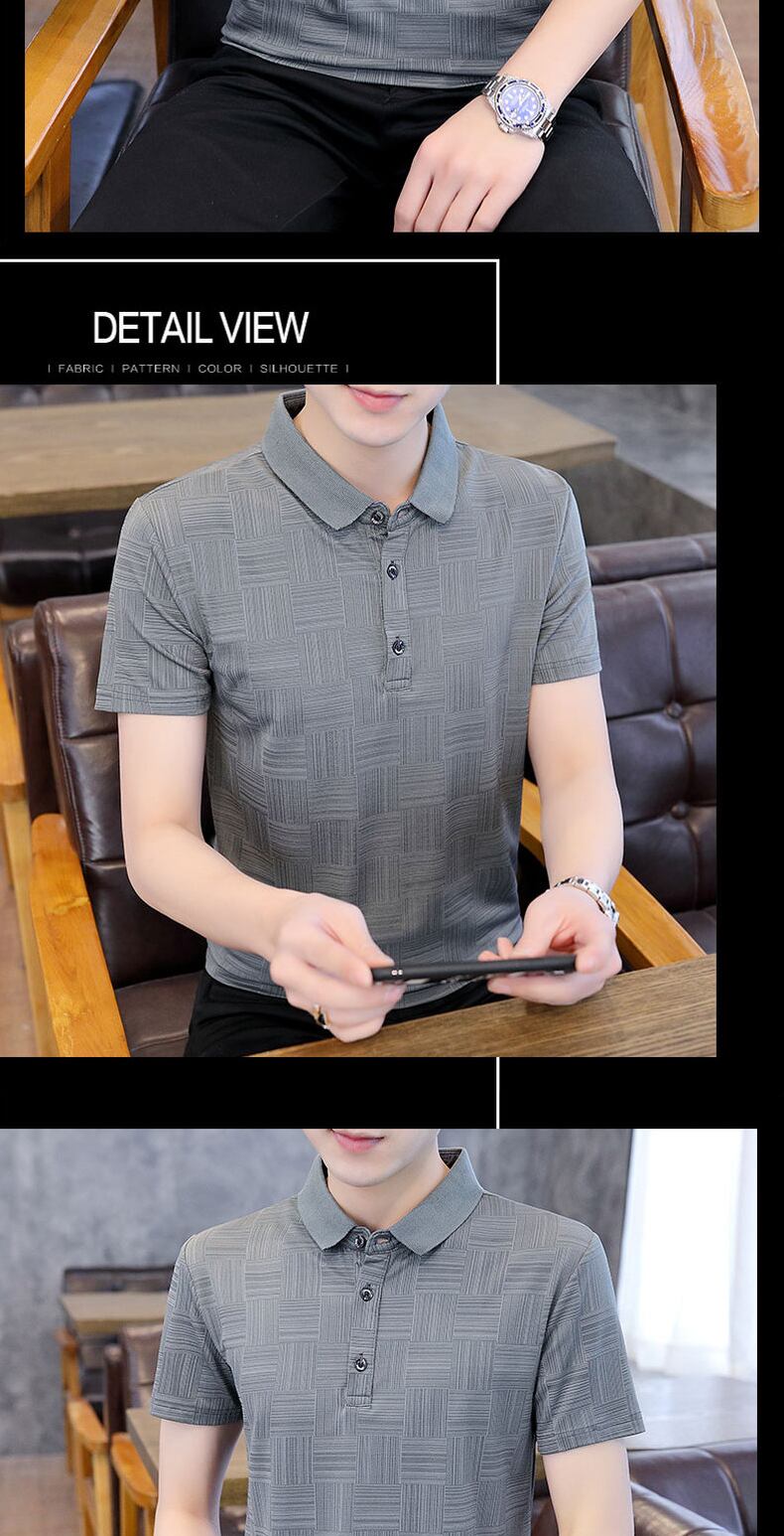 Polo shirt short-sleeved men's Paul ice silk breathable thin section half-sleeved business clothes lapel high-end gray t-shirt シルク Tシャツ doushi31378998789