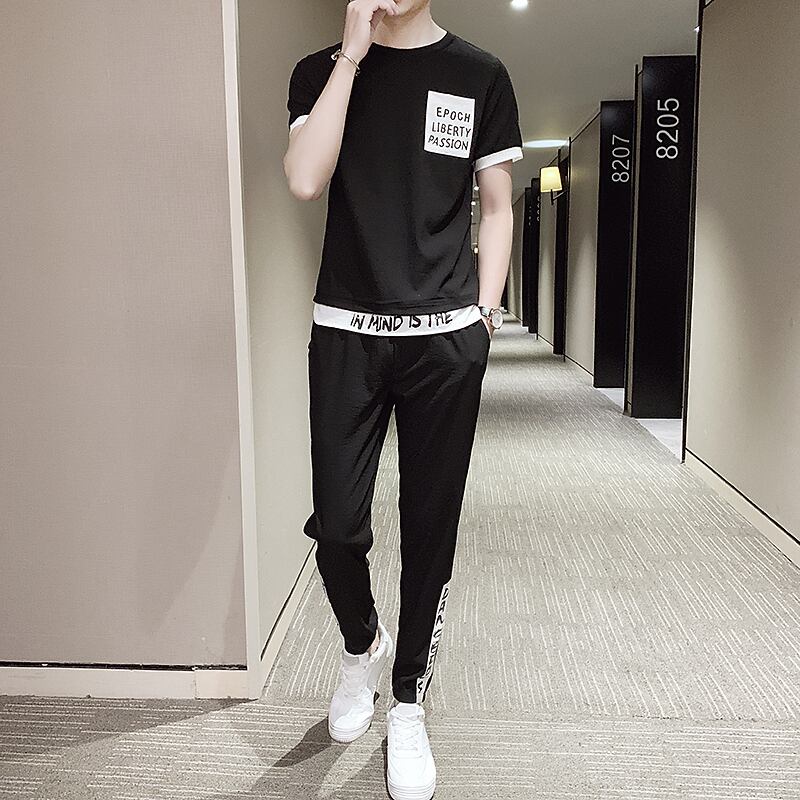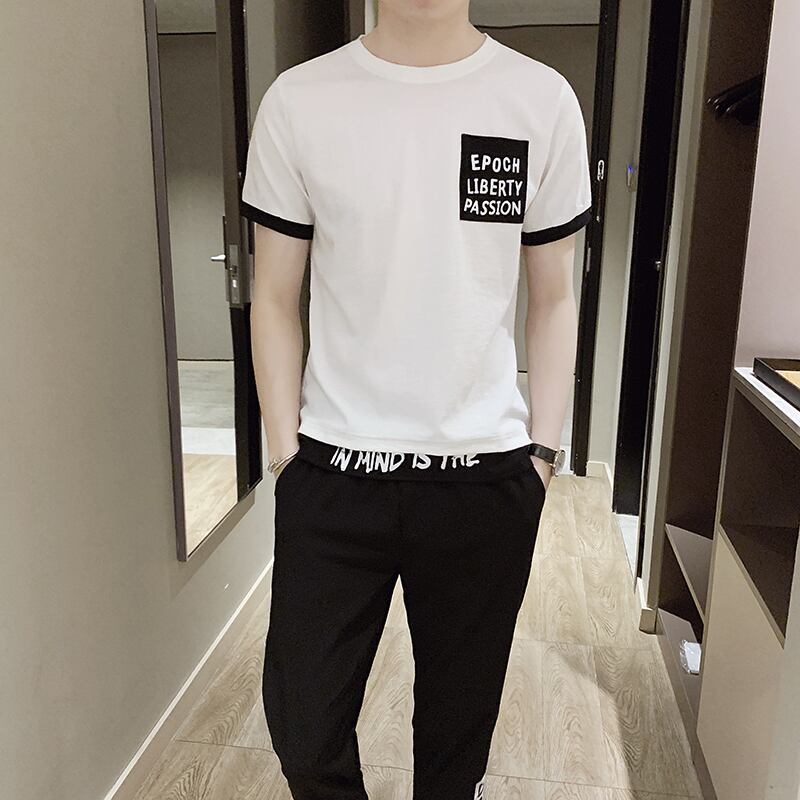 2022 new summer ice silk short-sleeved t-shirt men's casual suit ins trend brand men's suit with handsome カジュアル サマー 夏物 シルク Tシャツ doushi47447814760