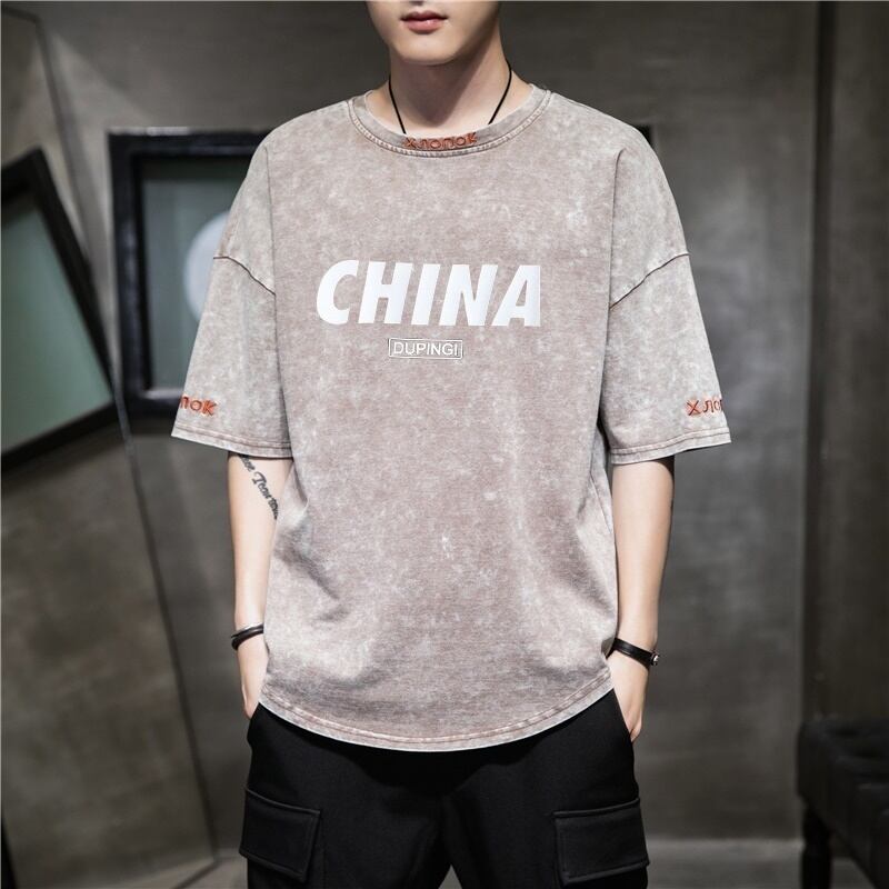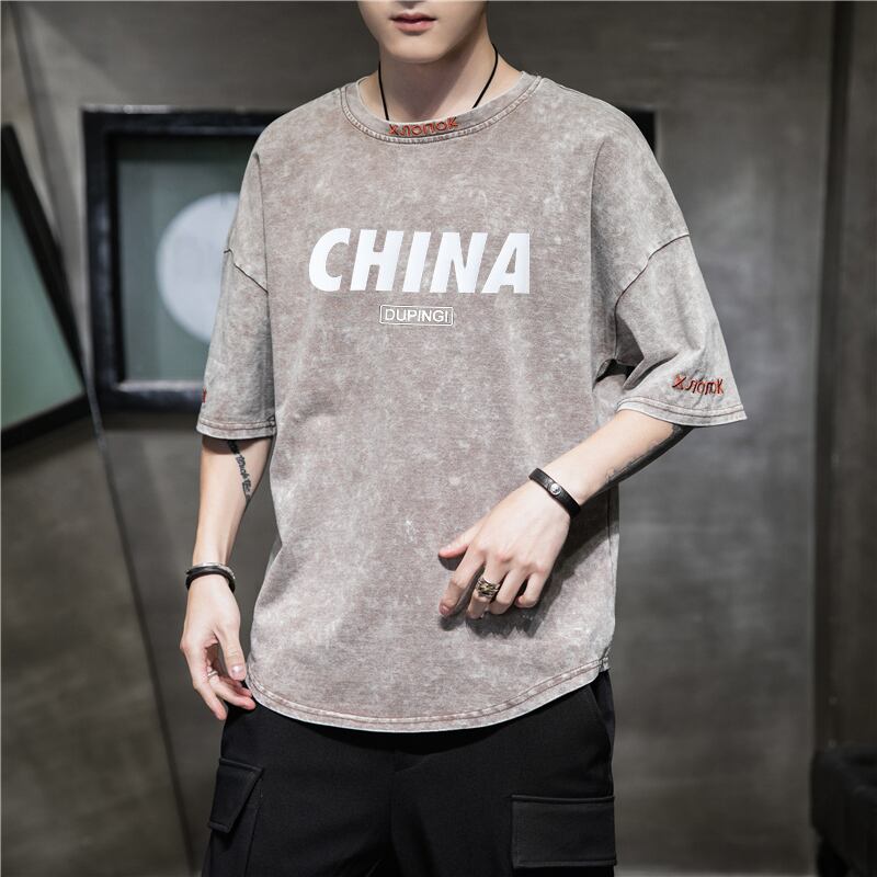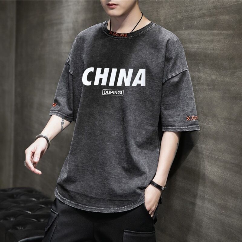Short-sleeved t-shirt men's 2022 new Hong Kong style loose half-sleeved summer trend five-point sleeved clothes tide brand medium-sleeved t-shirt サマー 夏物 Tシャツ doushi25894795370
