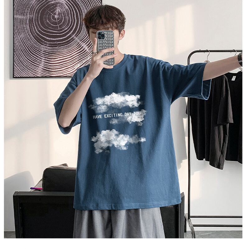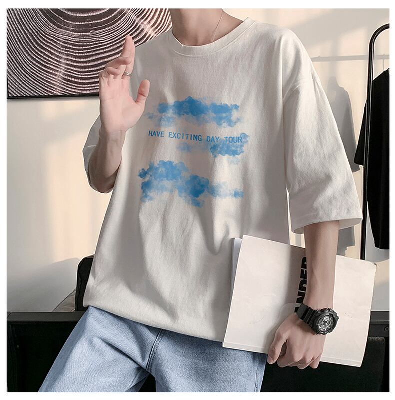 Hong Kong style literature and art summer short-sleeved t-shirt men's loose all-match ins trend boys cotton five-point half-sleeve T-shirt Tide brand コットン サマー 夏物 Tシャツ doushi89737603655