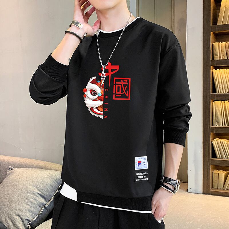 Men's sweater spring and autumn national tide loose fake two-piece long-sleeved t-shirt handsome all-match autumn clothes casual round neck top ロング カジュアル スプリング 春物 オータム 秋物 Oネック Tシャツ doushi16460552493