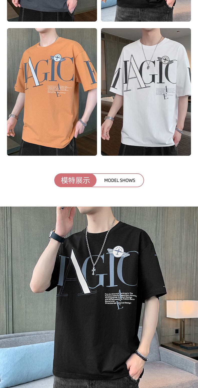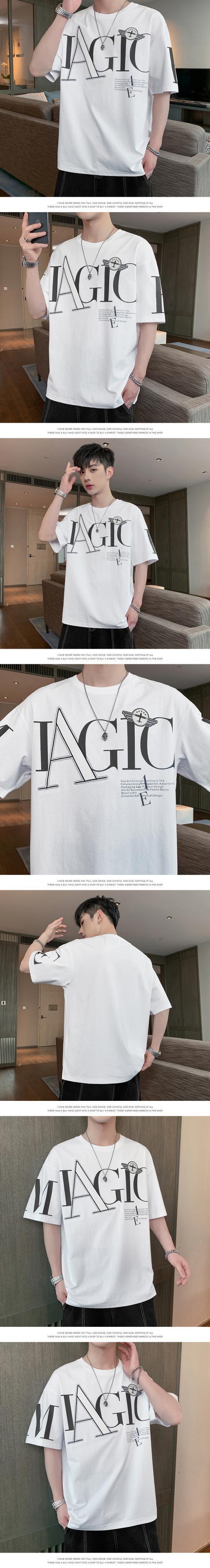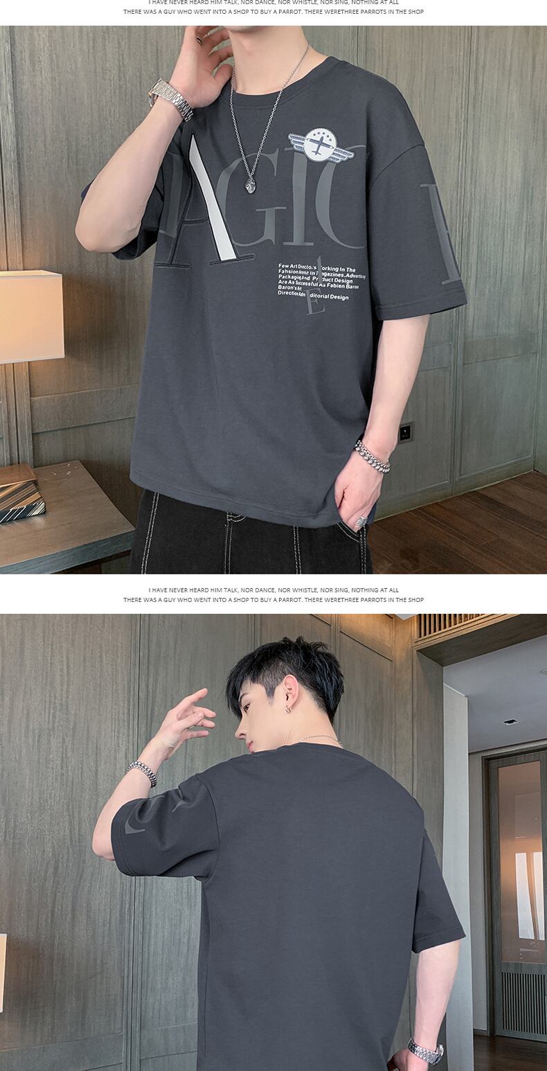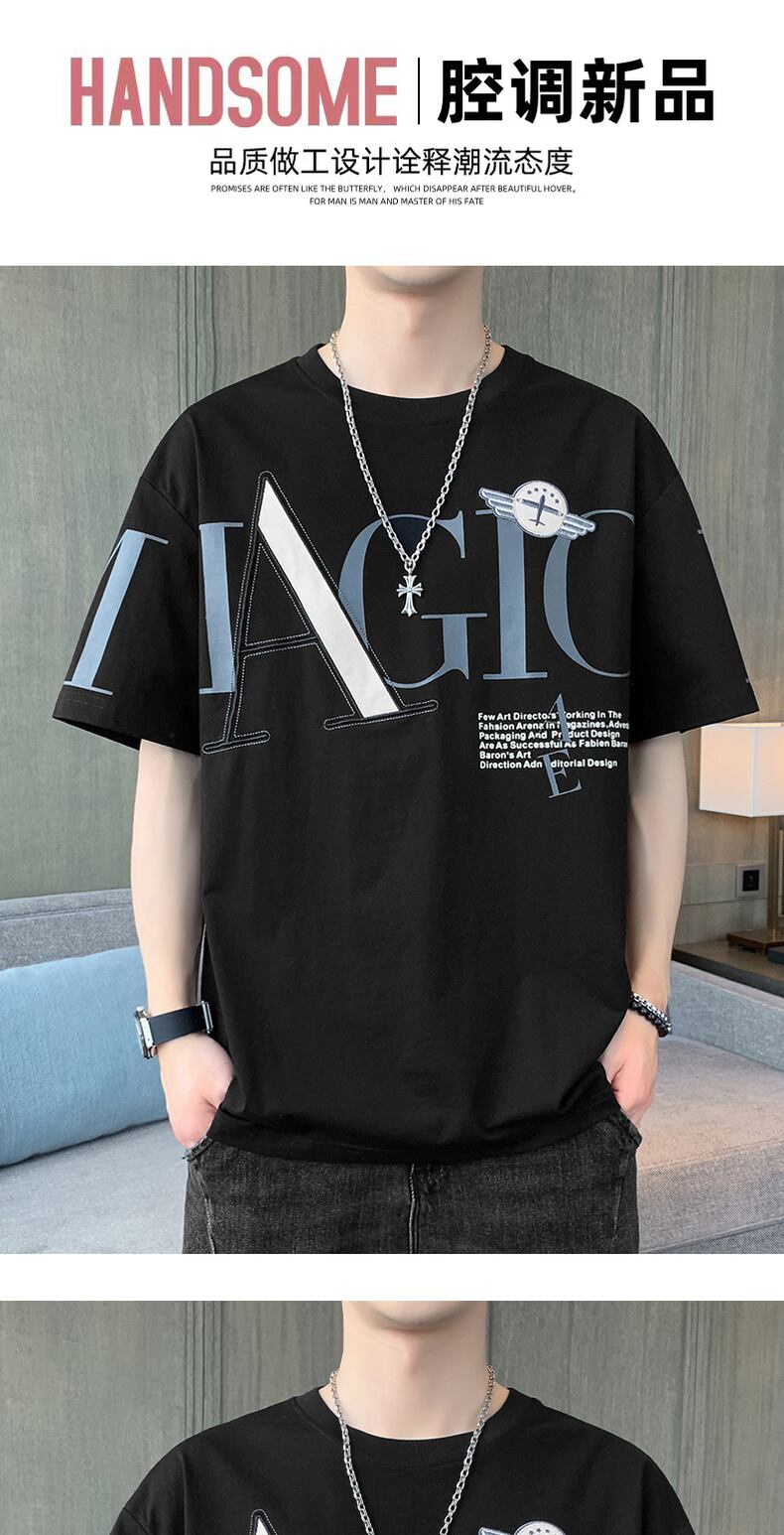 Hong Kong style t-shirt men's short-sleeved loose trend letter printing top clothes summer thin t-shirt Tide brand half-sleeve サマー 夏物 Tシャツ doushi94544205363