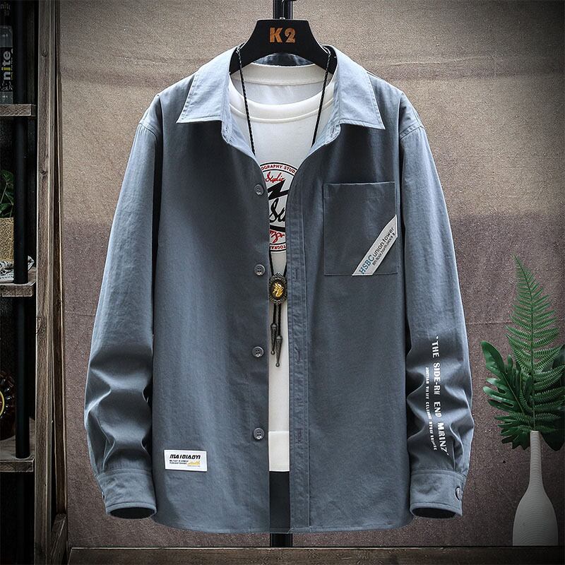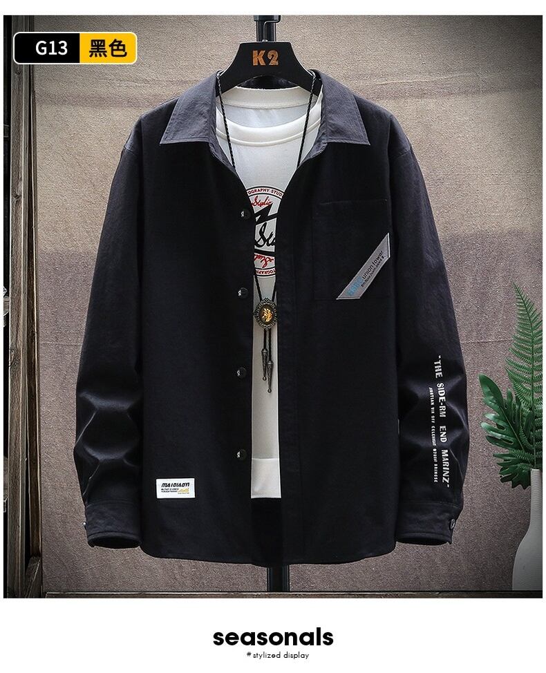 Long-sleeved shirt men's jacket version of the Hong Kong style top clothes outside the trend of summer thin tooling handsome casual shirt ロング カジュアル サマー 夏物 doushi12180188034