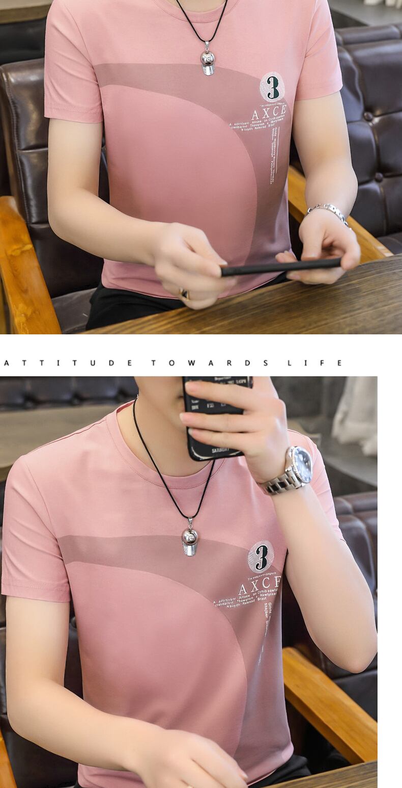 2022 new short-sleeved t-shirt men's summer trend self-cultivation half-sleeved tide brand top youth student t-shirt サマー 夏物 Tシャツ doushi7789766861