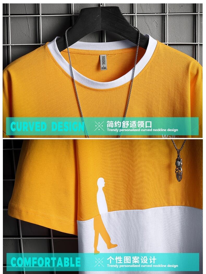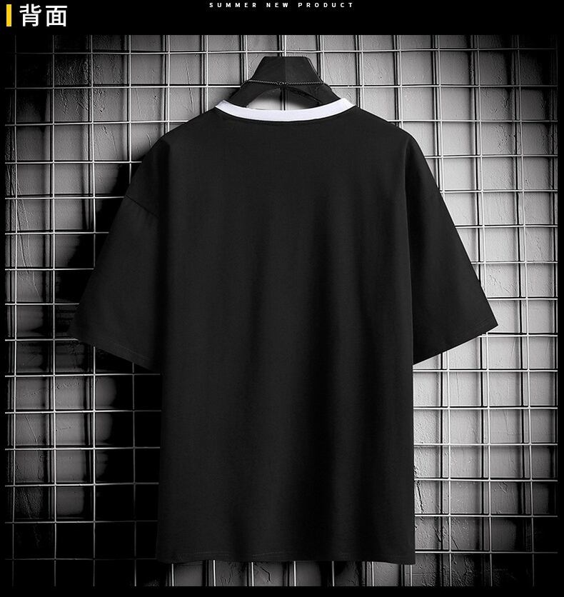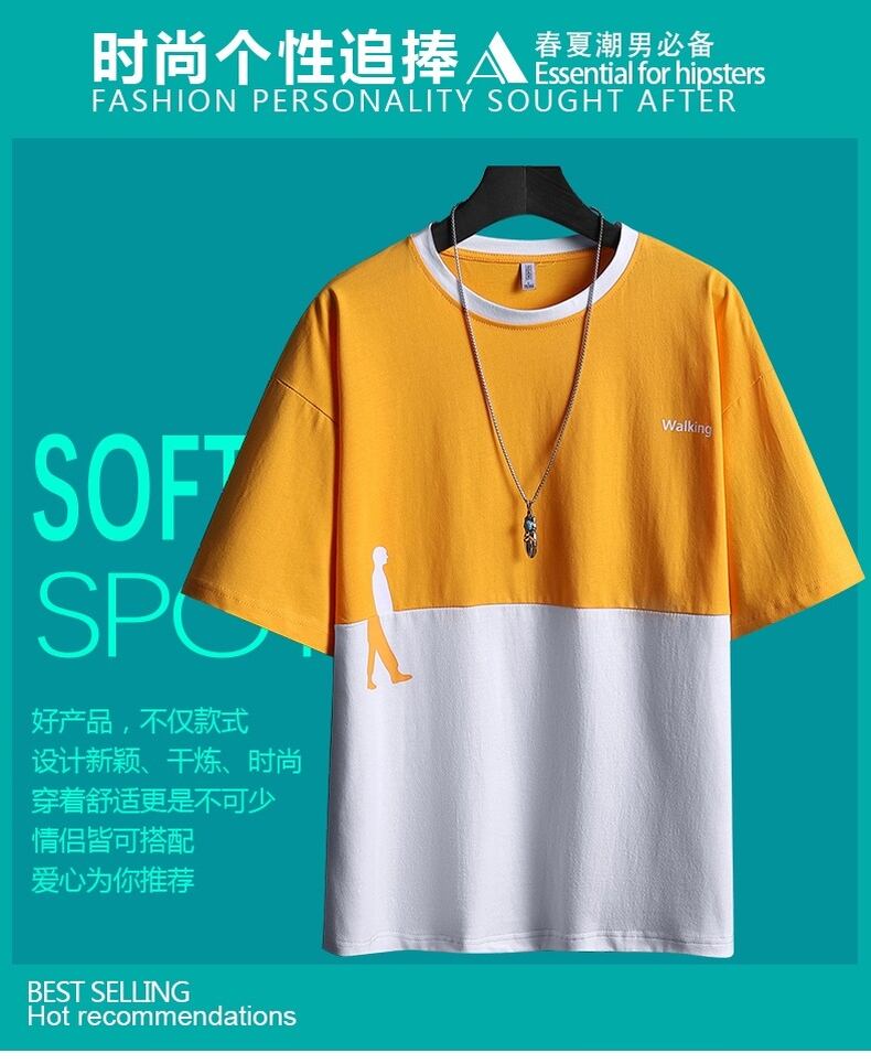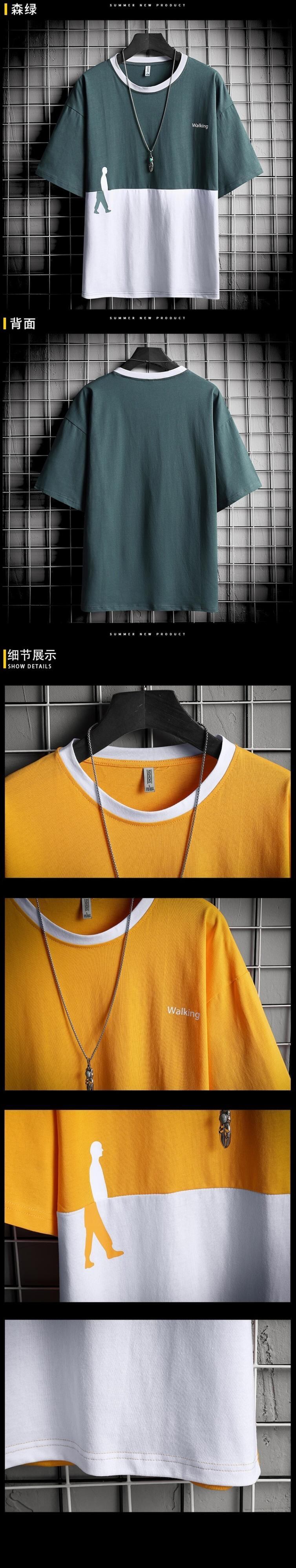 Tide brand short-sleeved t-shirt men's trend Hong Kong style color matching chic mid-sleeve bottoming shirt bf clothes summer ins half-sleeve loose サマー 夏物 Tシャツ doushi70737153961