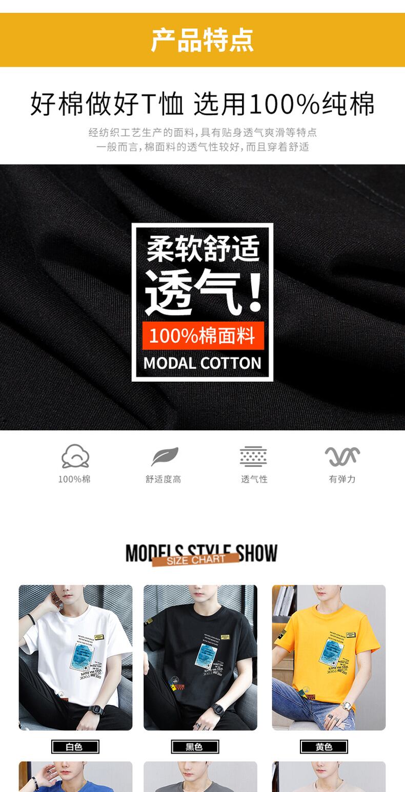 Ice silk thin short-sleeved t-shirt men's summer cotton youth junior high students handsome half-sleeved summer clothes コットン サマー 夏物 シルク Tシャツ doushi78938809874