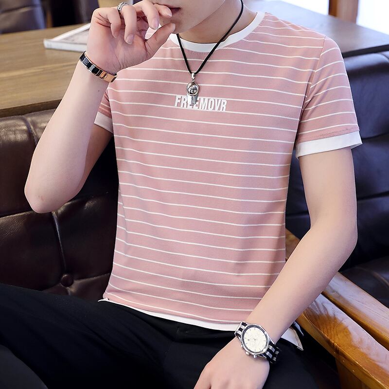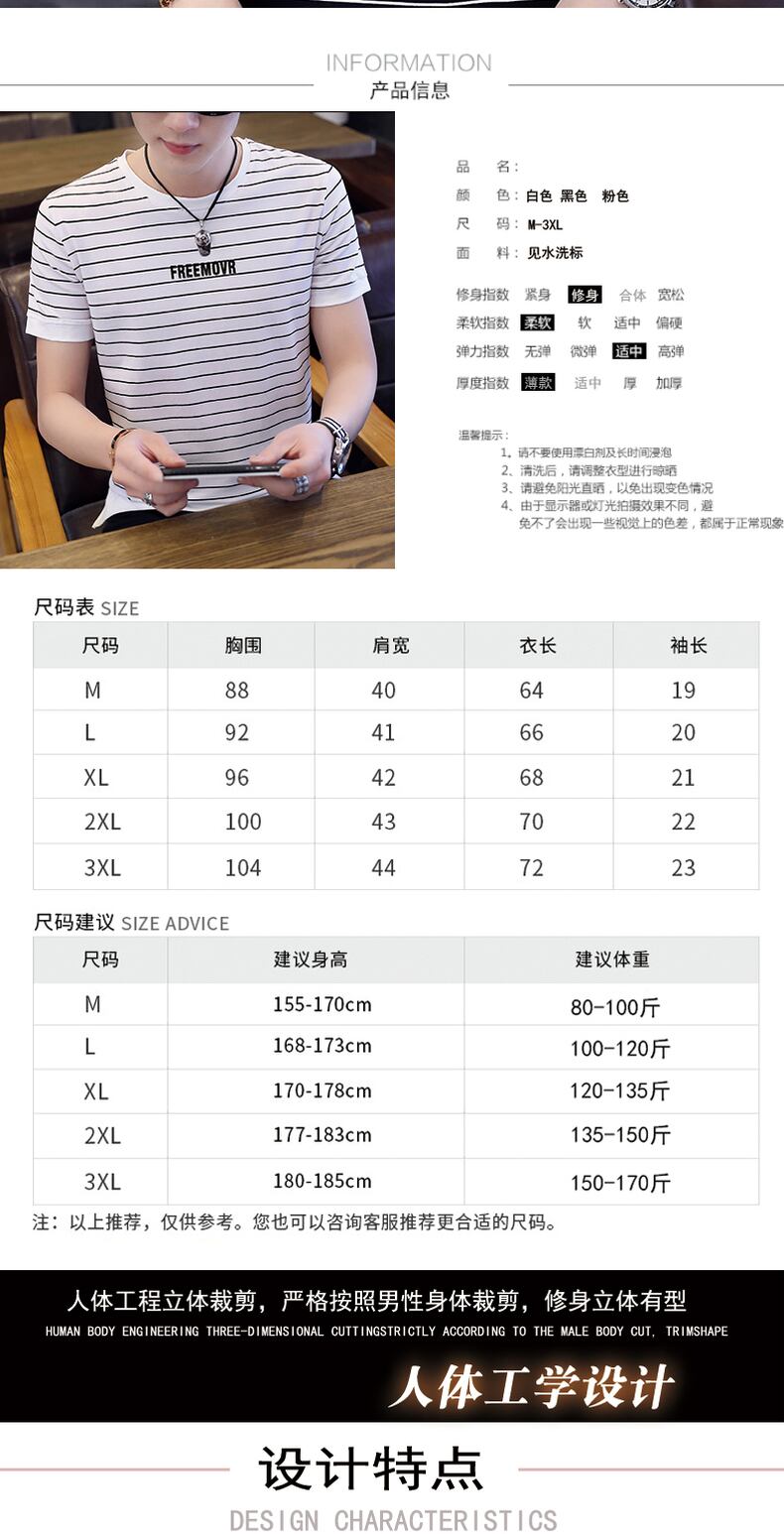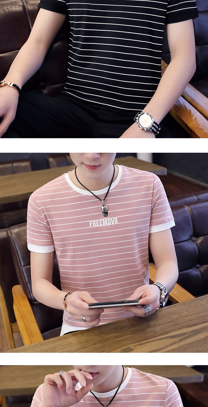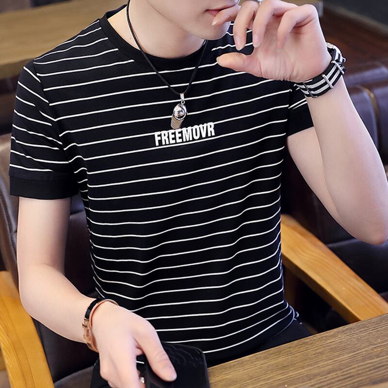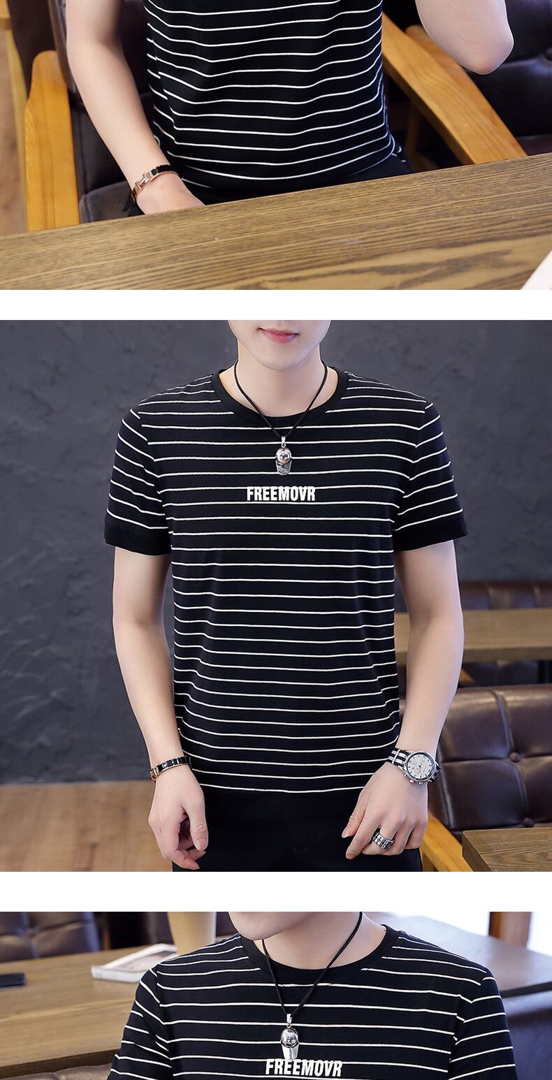 2022 new men's short-sleeved T-shirt all-match summer round neck striped half-sleeved men's trendy fashion brand clothes t-shirt サマー 夏物 Oネック ストライプ Tシャツ doushi79778232168