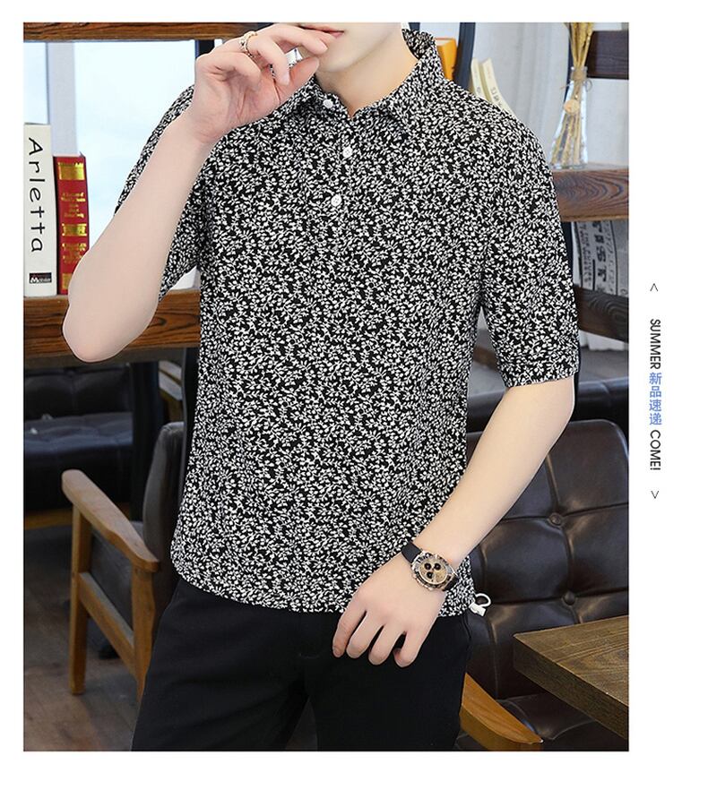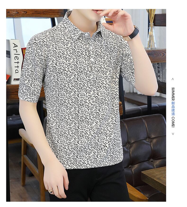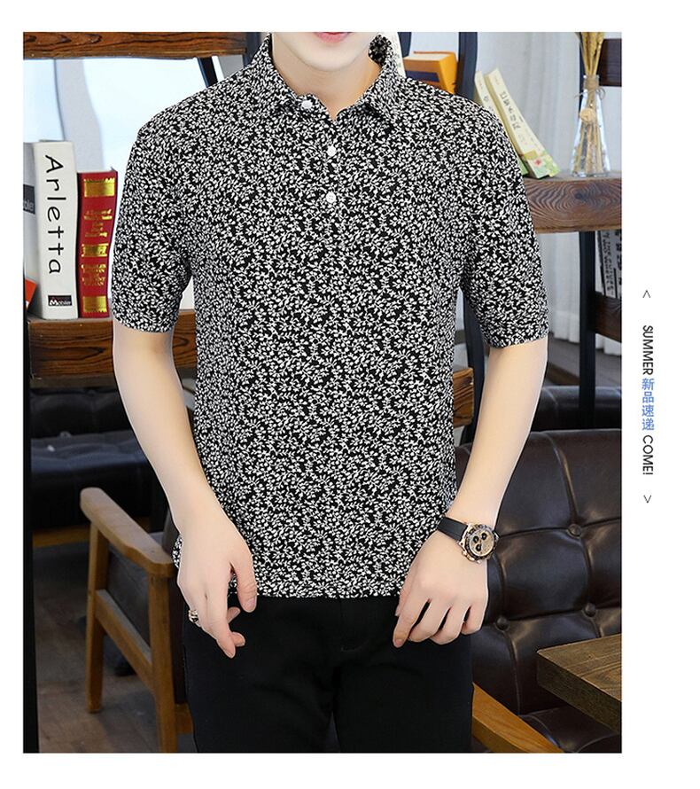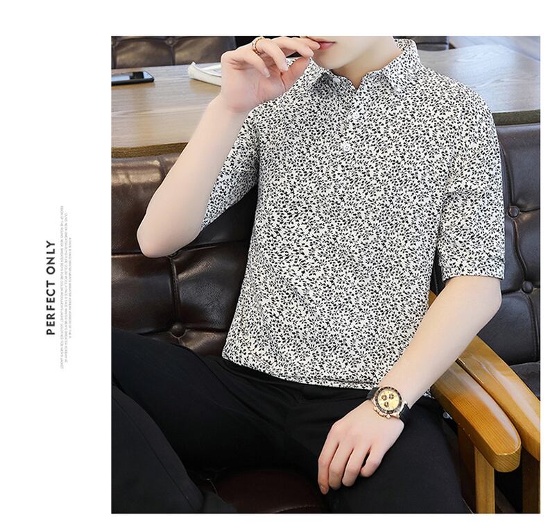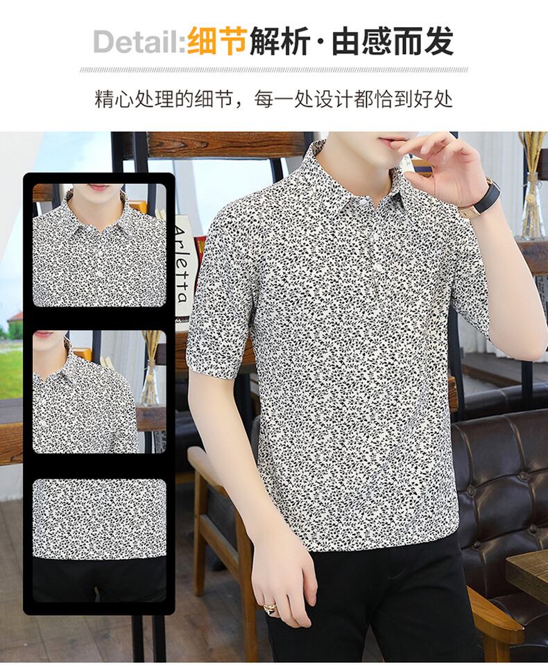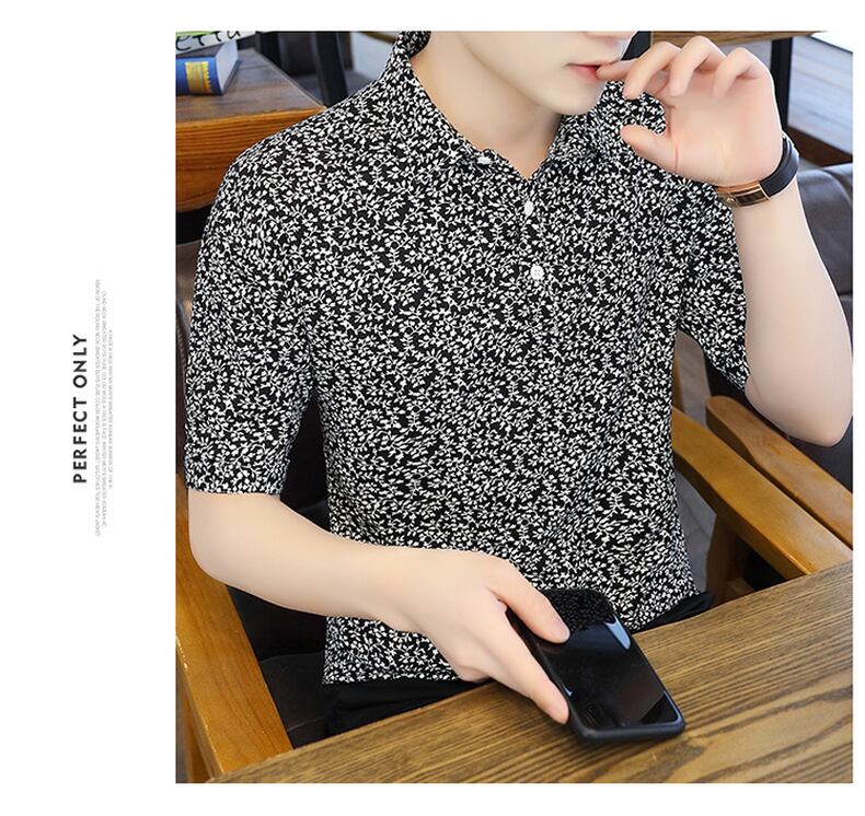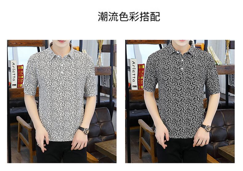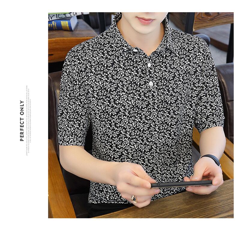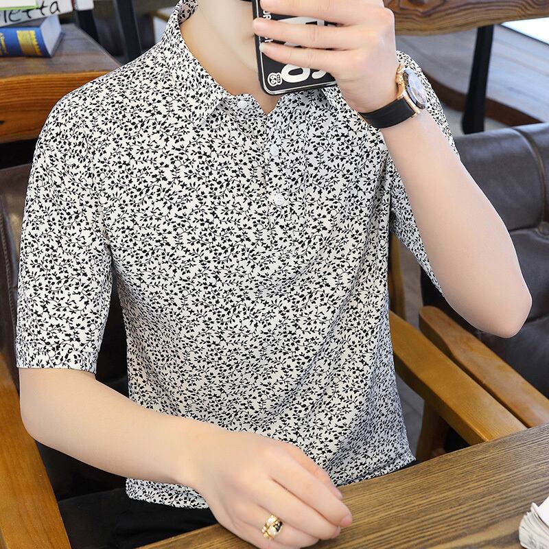 Summer new short-sleeved t-shirt men's ese version trend polo flower shirt V-neck half-sleeve ice silk clothes summer サマー 夏物 Vネック シルク Tシャツ フラワーデザイン doushi91470029343