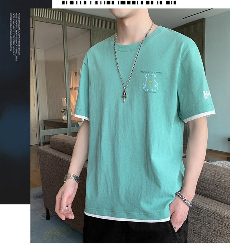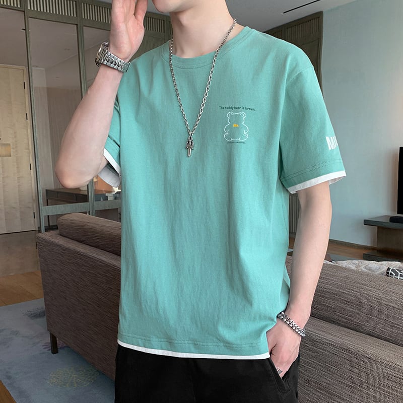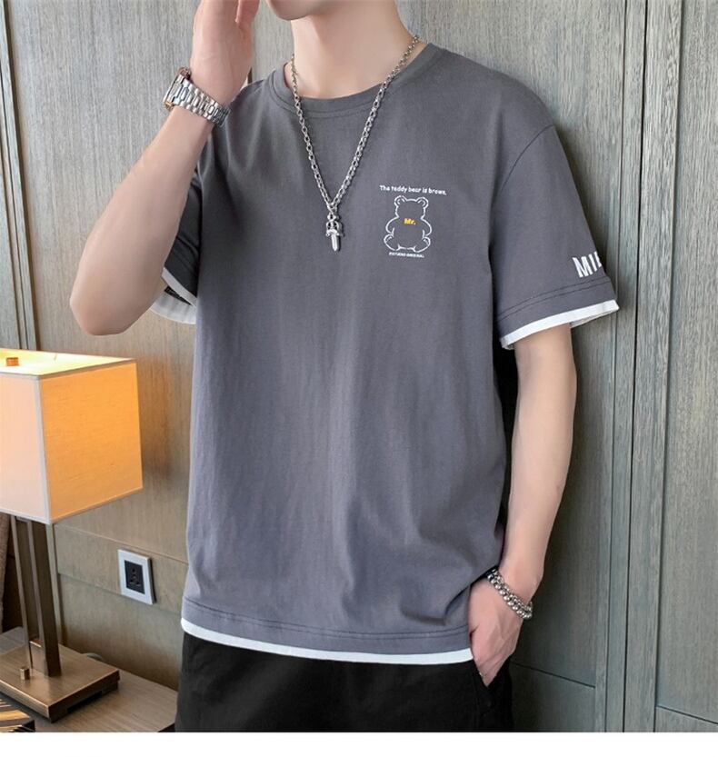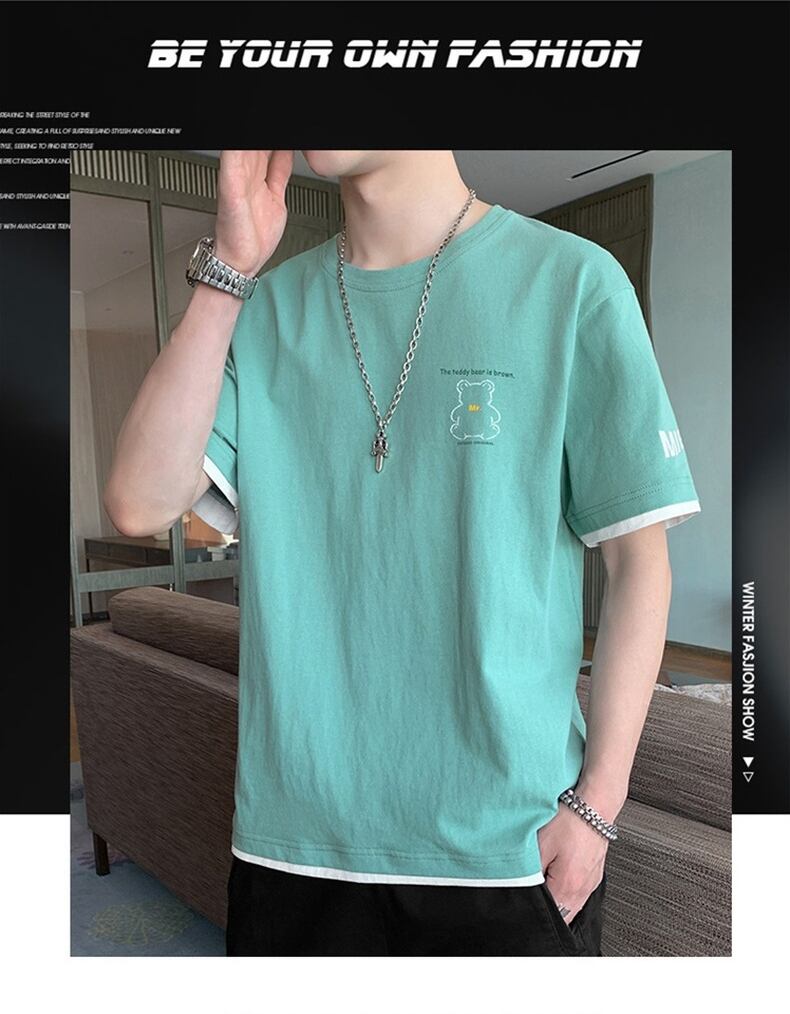 Short-sleeved T-shirt men's spring and autumn trend 2022 summer thin round neck bottoming shirt casual cotton half-sleeved men's top コットン カジュアル スプリング 春物 サマー 夏物 オータム 秋物 Oネック Tシャツ doushi32275442361