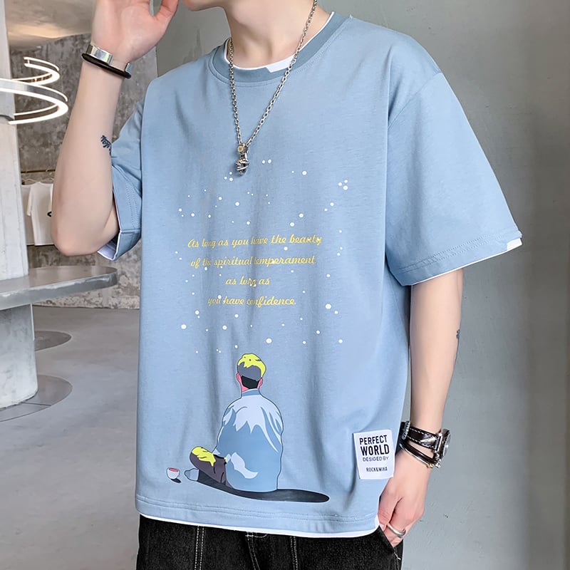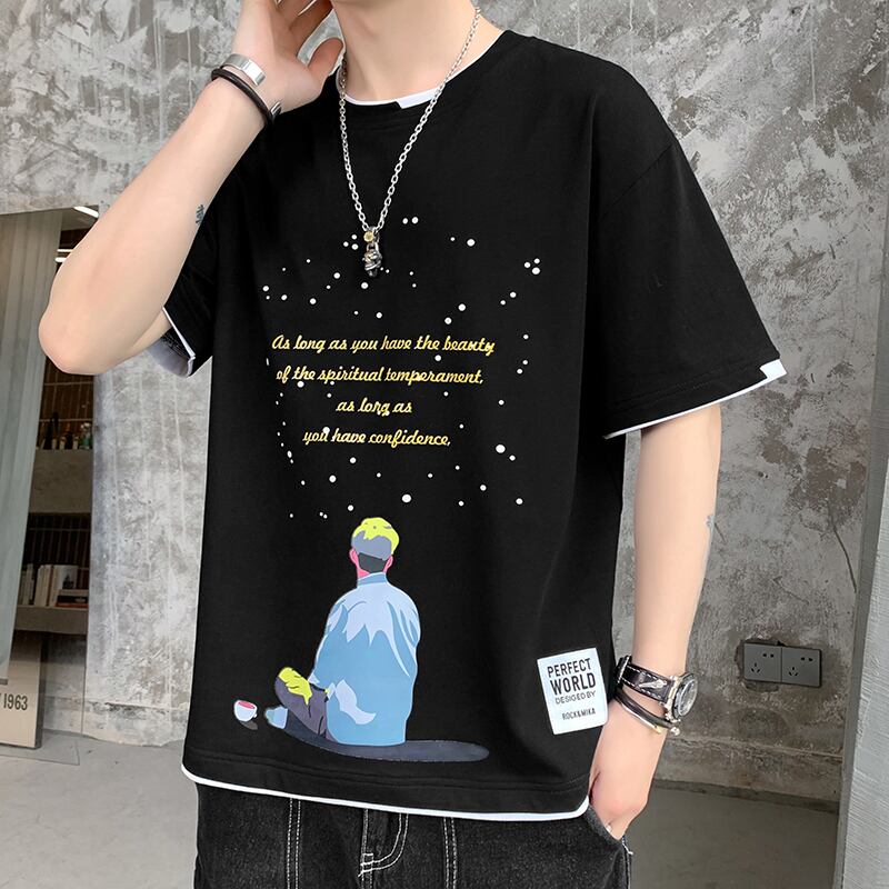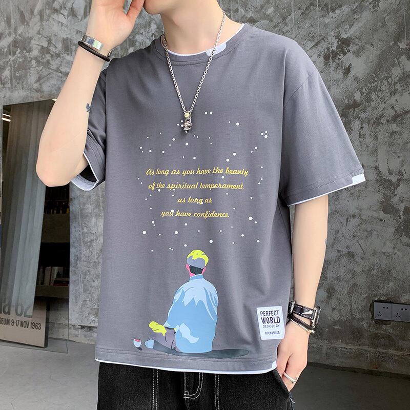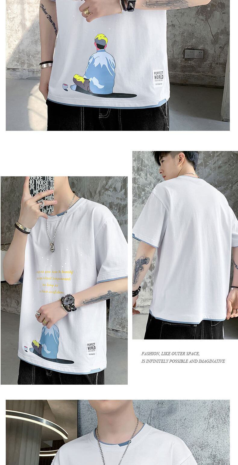Short-sleeved t-shirt men's summer 2022 new youth cotton men's shirts student trend loose men's summer clothes コットン シャツ サマー 夏物 Tシャツ doushi2047800436