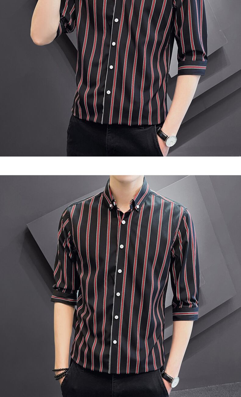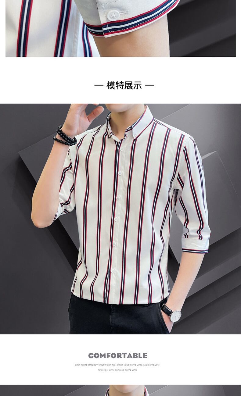 2022 summer new shirts men's three-quarter sleeve trend vertical stripes casual short-sleeved shirts slim inch clothes カジュアル シャツ サマー 夏物 ストライプ スリム doushi63873282470