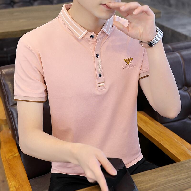 2022 summer new lapel short-sleeved t-shirt men's slim casual polo shirt polo shirt men's youth half-sleeved top カジュアル サマー 夏物 スリム Tシャツ doushi53692925527