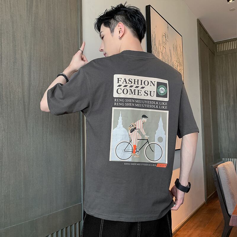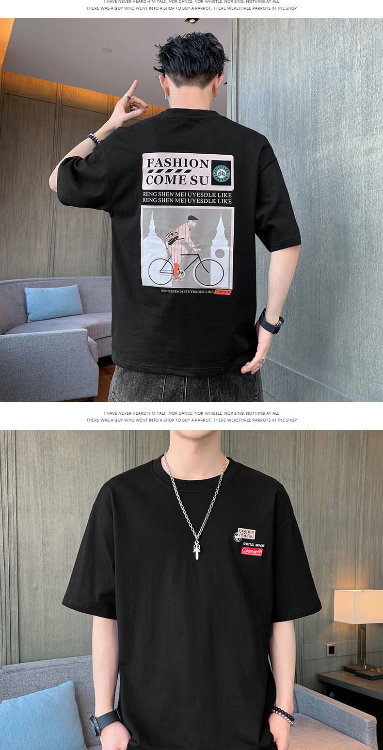 Men's short-sleeved Hong Kong style t-shirt loose trend printing half-sleeve t-shirt student cotton top clothes casual summer clothes コットン カジュアル サマー 夏物 Tシャツ doushi73393572988