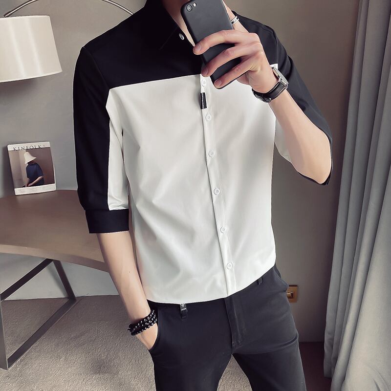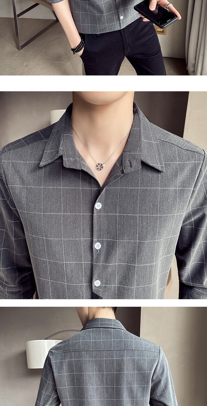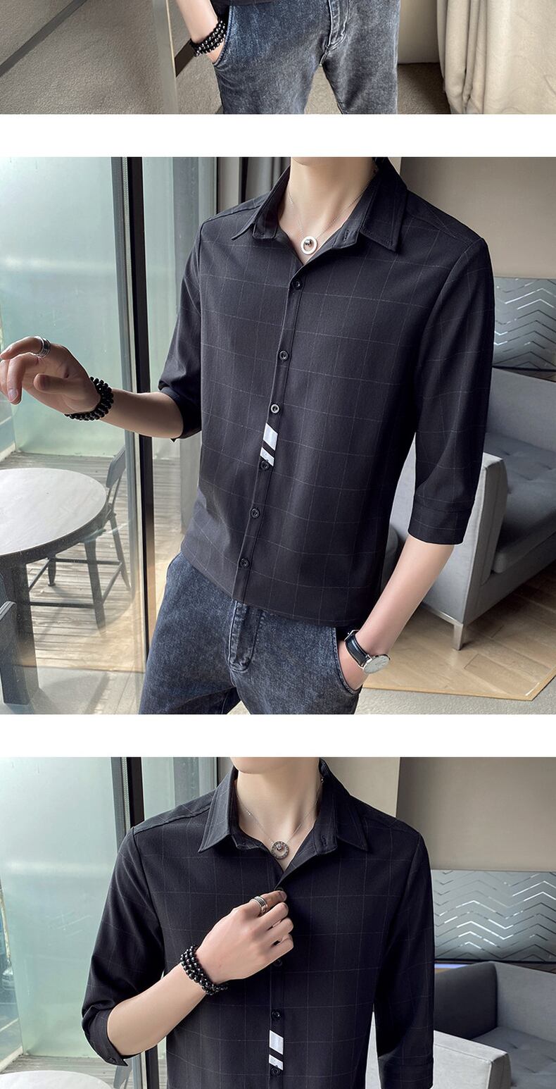 Men's plaid shirt men's version of the slim summer 7-quarter sleeve shirt ruffian handsome short-sleeved trend medium-sleeve inch shirt サマー 夏物 スリム doushi57993342291