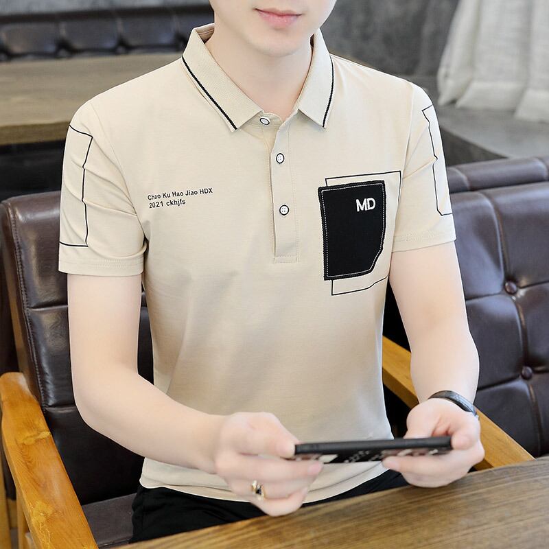 Men's short-sleeved t-shirt 2022 new summer trend lapel t-shirt summer polo shirt with a collar and inner T clothes サマー 夏物 Tシャツ doushi73317766812