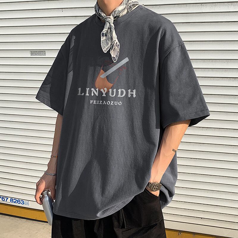 Short-sleeved men's tide brand summer thin t-shirt design niche men's cotton large size five-point half-sleeve loose t-shirt コットン 大きめサイズ サマー 夏物 Tシャツ doushi21433415212