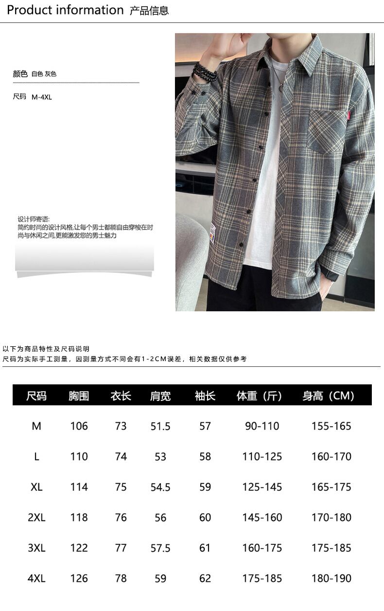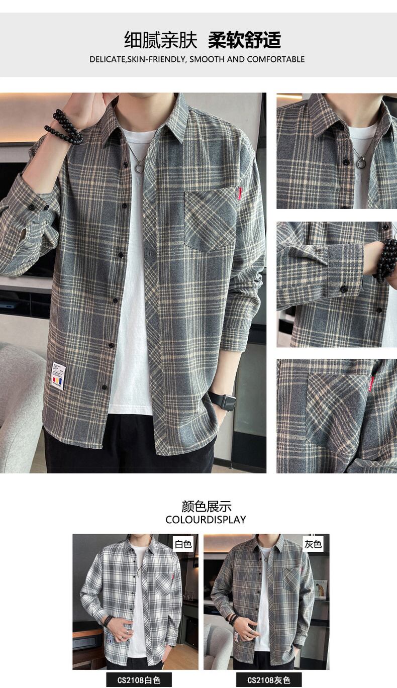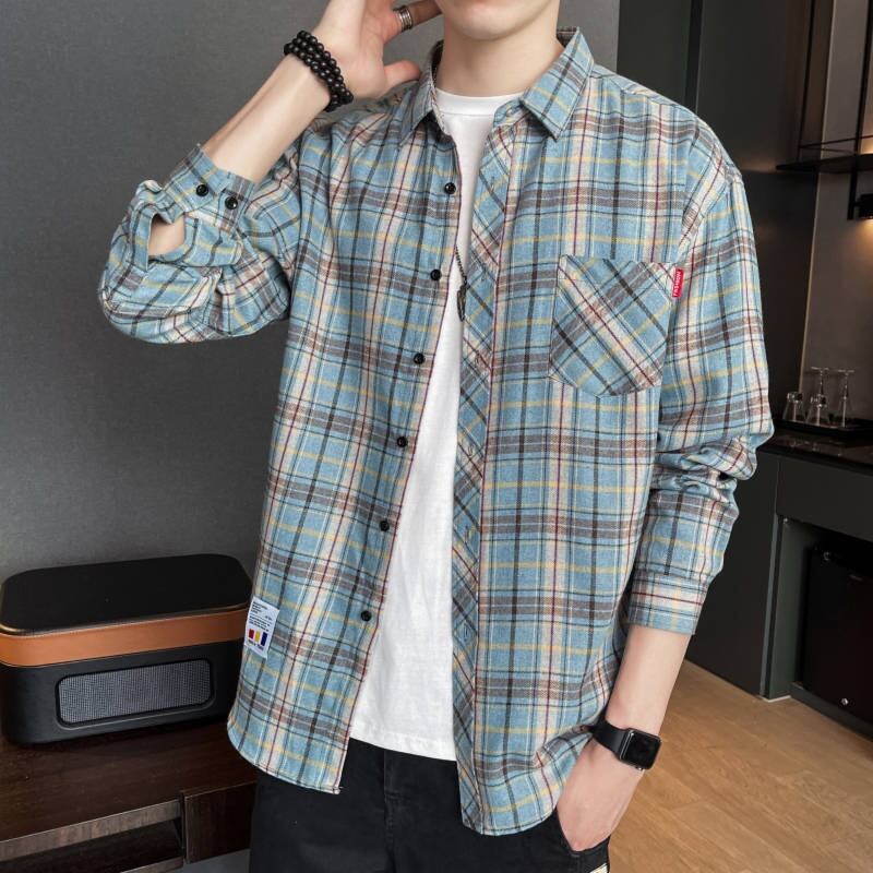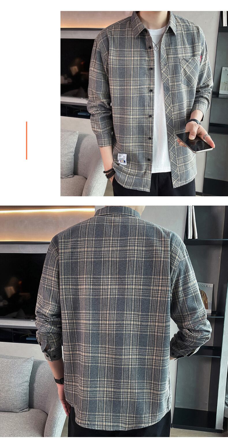 2022 spring and autumn new trend plaid shirt men's Hong Kong style casual long-sleeved jacket youth men's top trend ロング カジュアル スプリング 春物 オータム 秋物 doushi60493903534