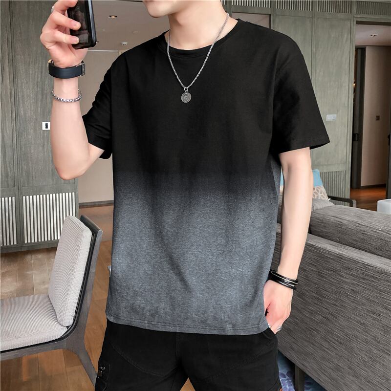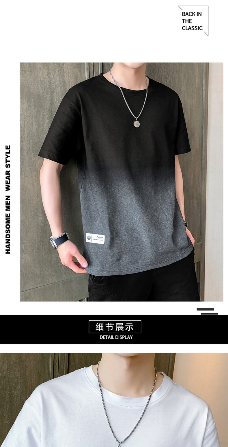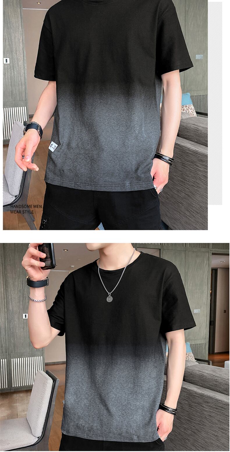Summer men's round neck short-sleeved t-shirt ins cotton gradient T-shirt large size men's cotton half-sleeve top clothes tide brand コットン 大きめサイズ サマー 夏物 Oネック Tシャツ doushi4063892708