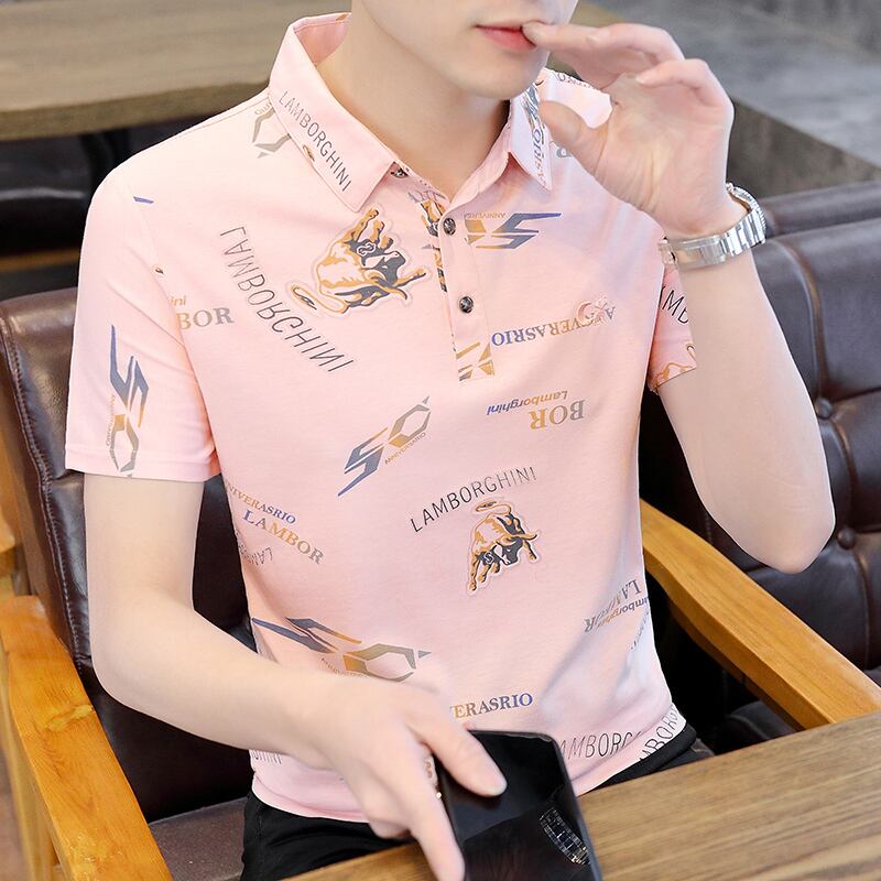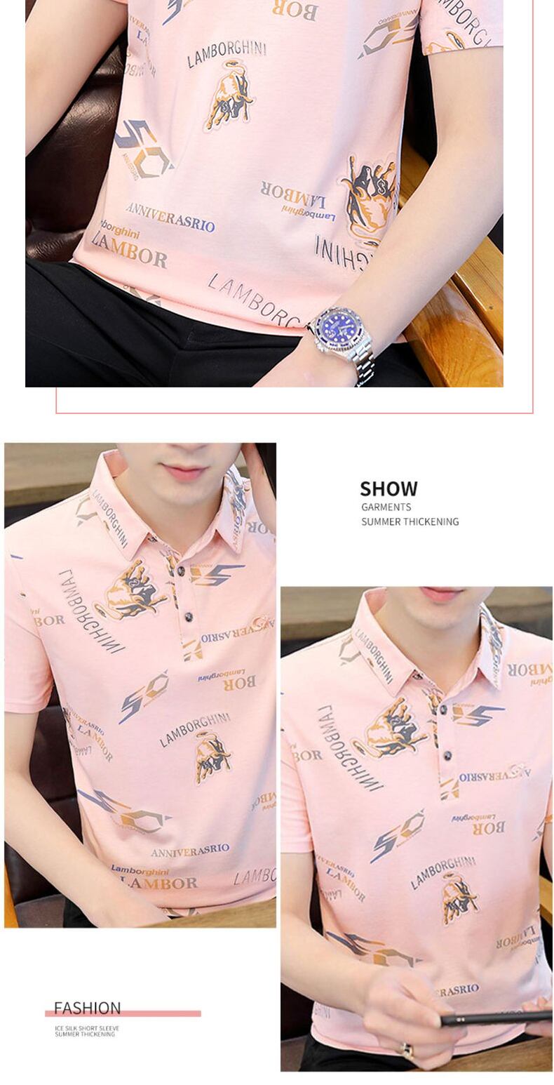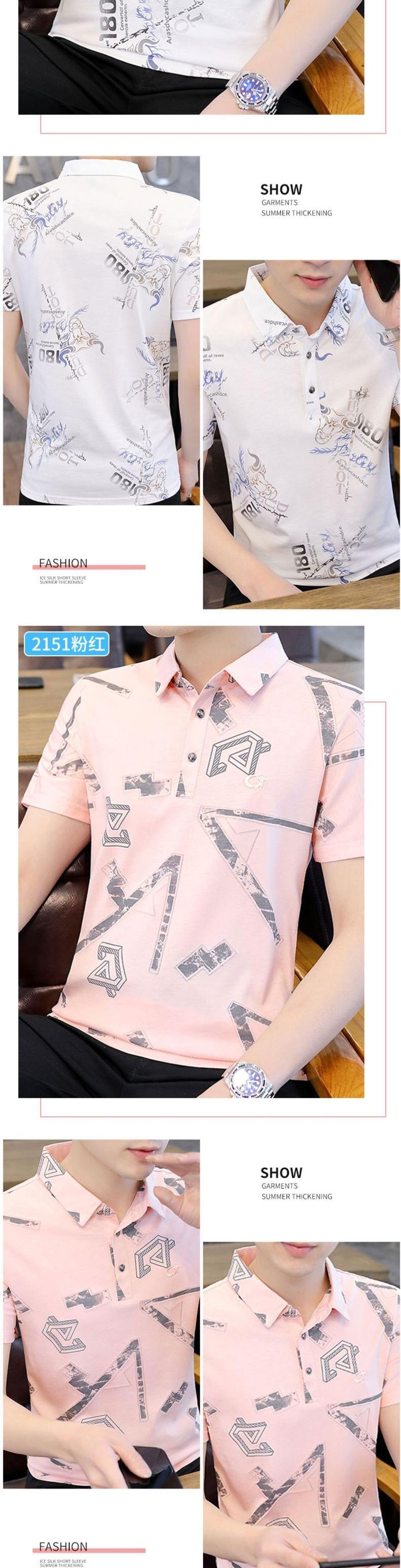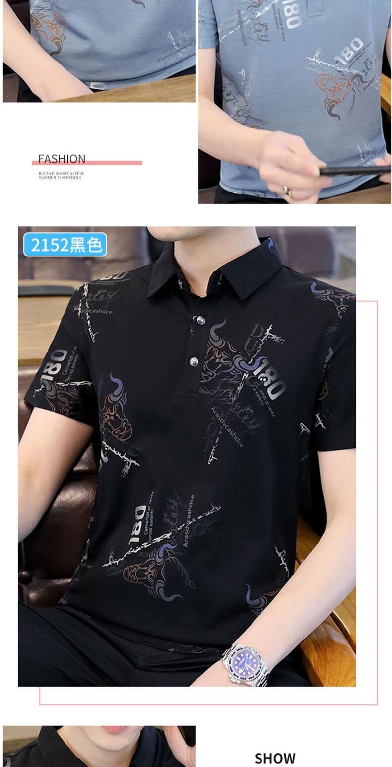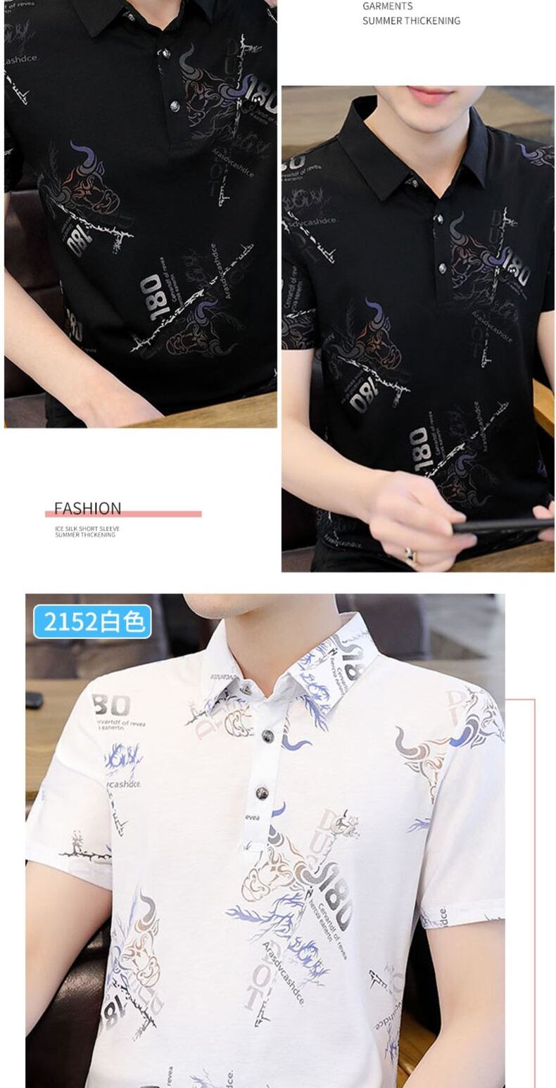 Ice silk short-sleeved T-shirt men's lapel summer thin section 2022 new lead POLO shirt trend casual t-shirt ins カジュアル サマー 夏物 シルク Tシャツ doushi89076027362