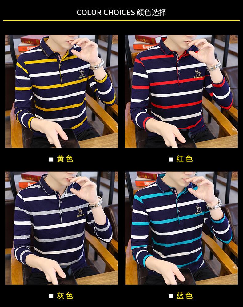Long Sleeve T-Shirt Men's Spring 2022 Shirt Collar POLO Shirt Striped Trend Lead Slim Fit ロング 長袖 スプリング 春物 ストライプ スリム Tシャツ doushi5753871827