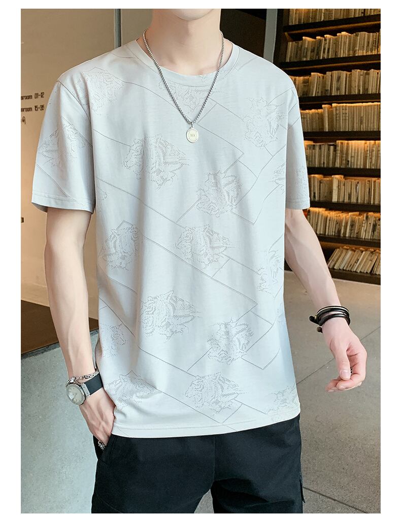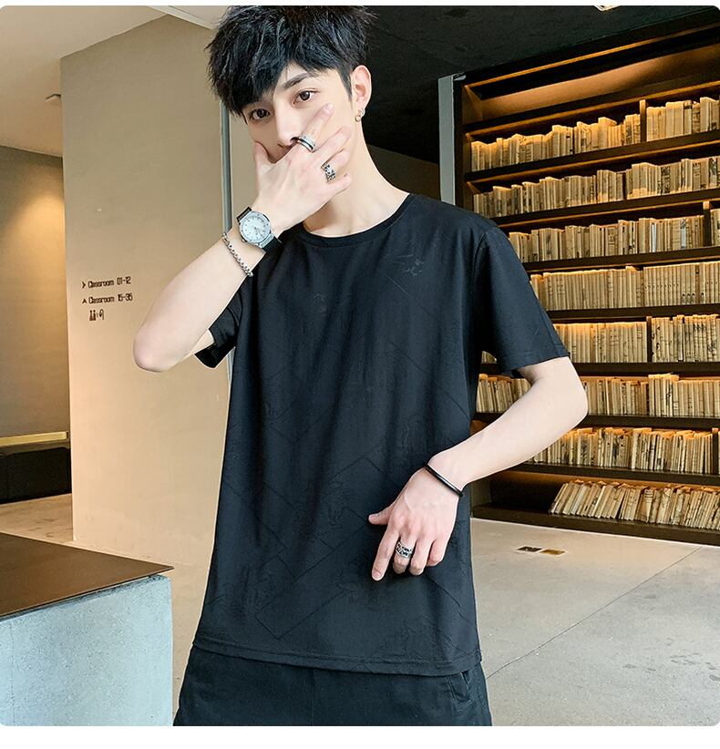 Men's short-sleeved T-shirt ice silk cool breathable inner T-shirt top trendy version ins half-sleeved clothes bottoming white t ホワイト シルク Tシャツ doushi11607916068