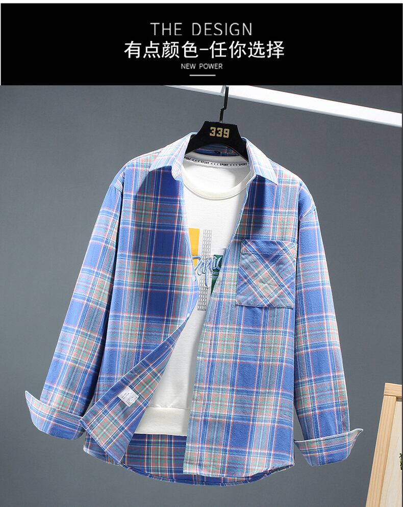 2022 new spring plaid shirt men's long-sleeved trend college style cotton shirt spring and autumn casual inch shirt ロング コットン カジュアル スプリング 春物 オータム 秋物 doushi14614078204