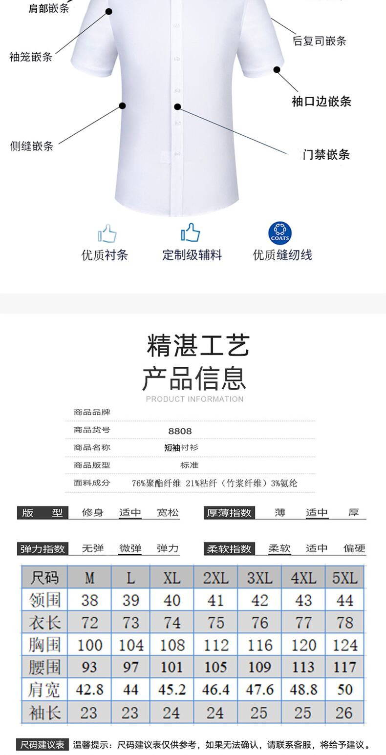 Men's Business mal Short Sleeve Shirt Short Sleeve Business Slim Slim Handsome White Shirt ショート ホワイト 半袖 ハーフスリーブ スリム doushi35018091208