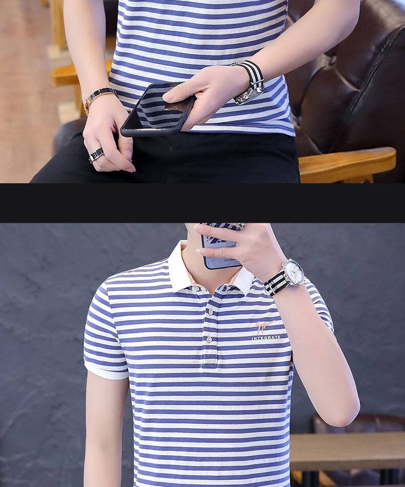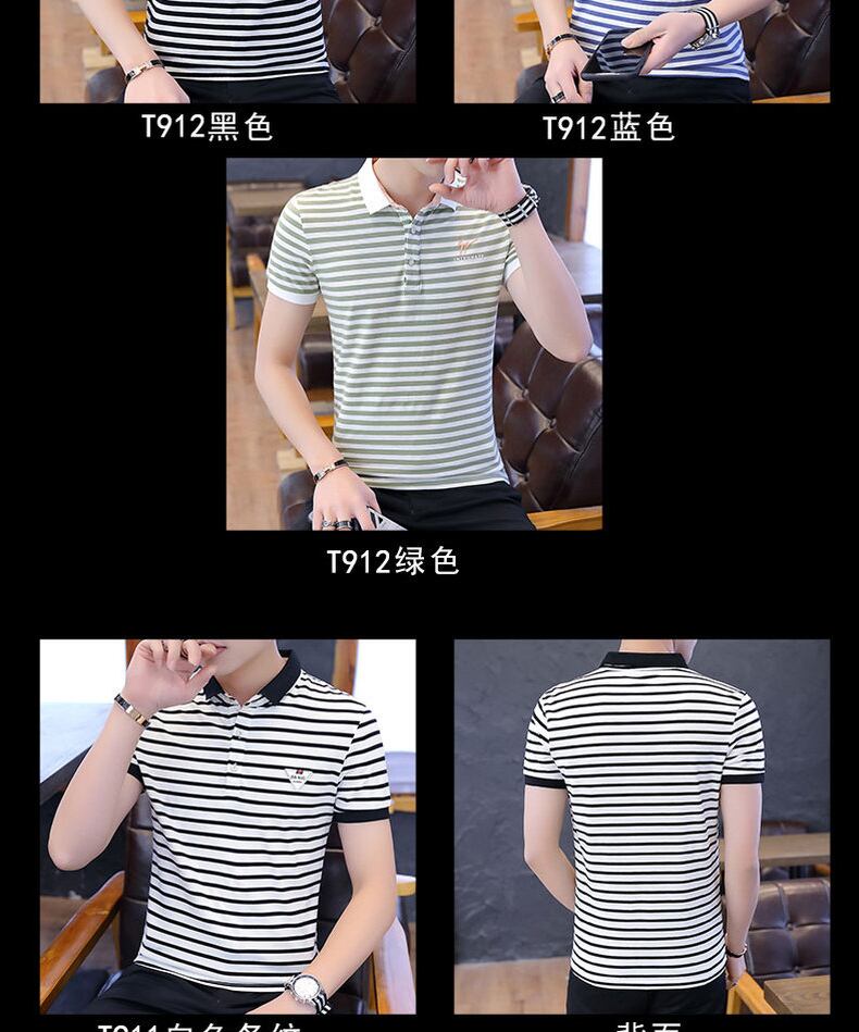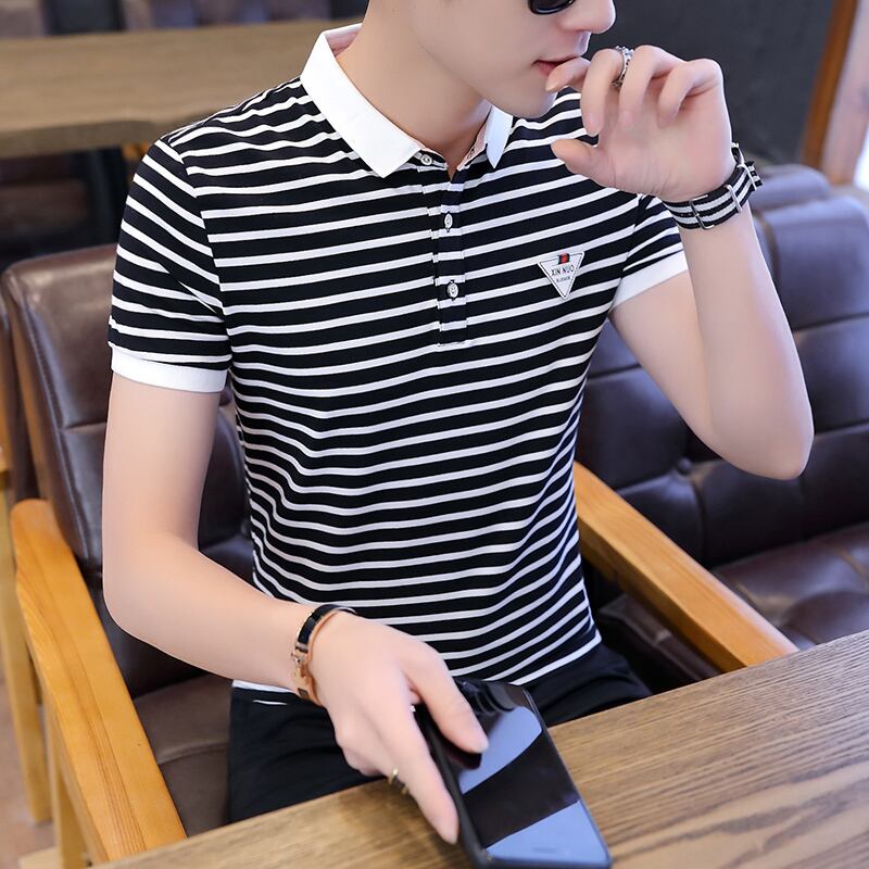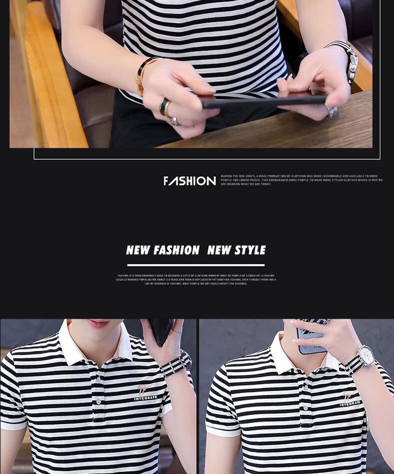Men's short-sleeved t-shirt 2022 summer new black and white striped polo shirt lapel trend men's t-shirt clothes ホワイト ブラック サマー 夏物 ストライプ Tシャツ doushi9714442904