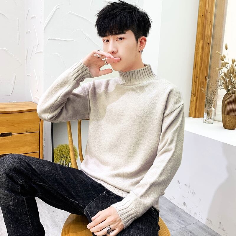 Half turtleneck sweater men's winter loose thickened mid-neck sweater men's solid color slim long-sleeved version of the bottoming shirt tide ロング ウィンター 冬物 スリム ソリッドカラー doushi4904130846