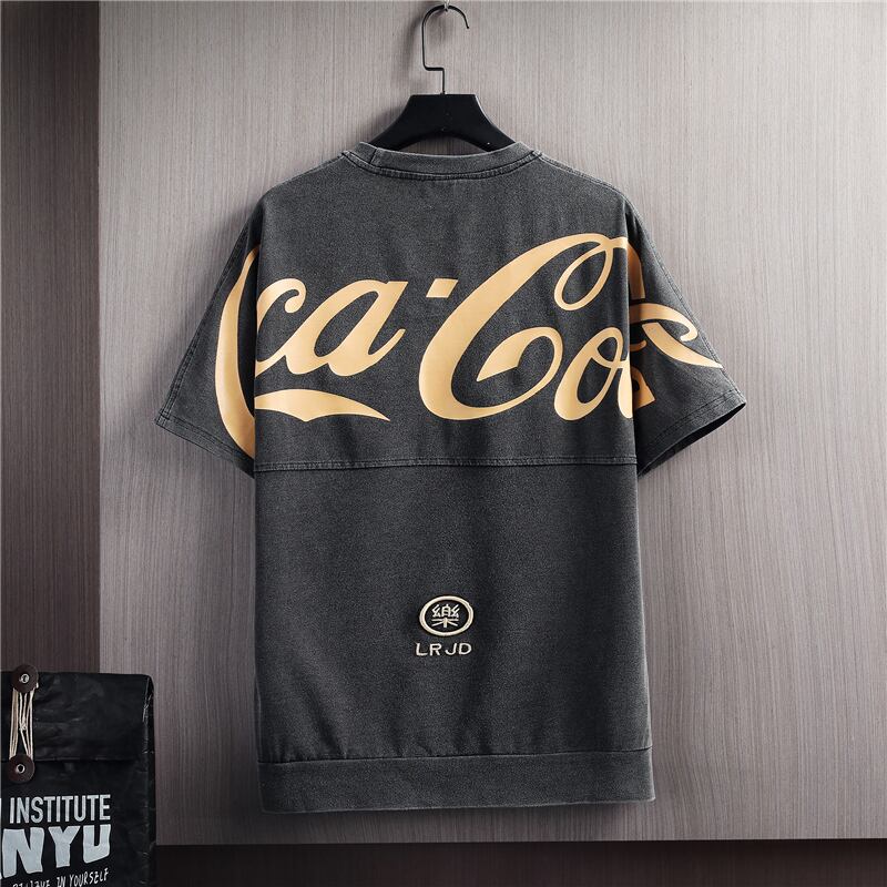 Denim short-sleeved t-shirt men's summer trend loose five-point ice-feeling half-sleeve top clothes ins tide brand 2022 new サマー 夏物 Tシャツ doushi30813759039