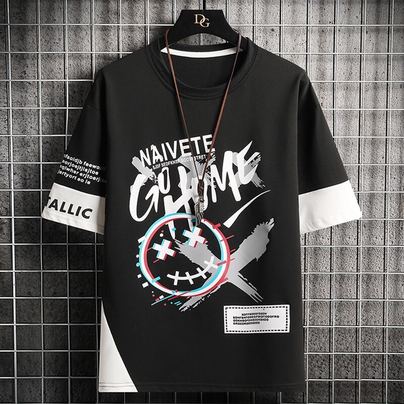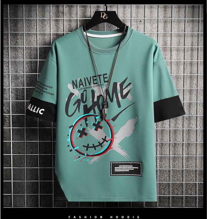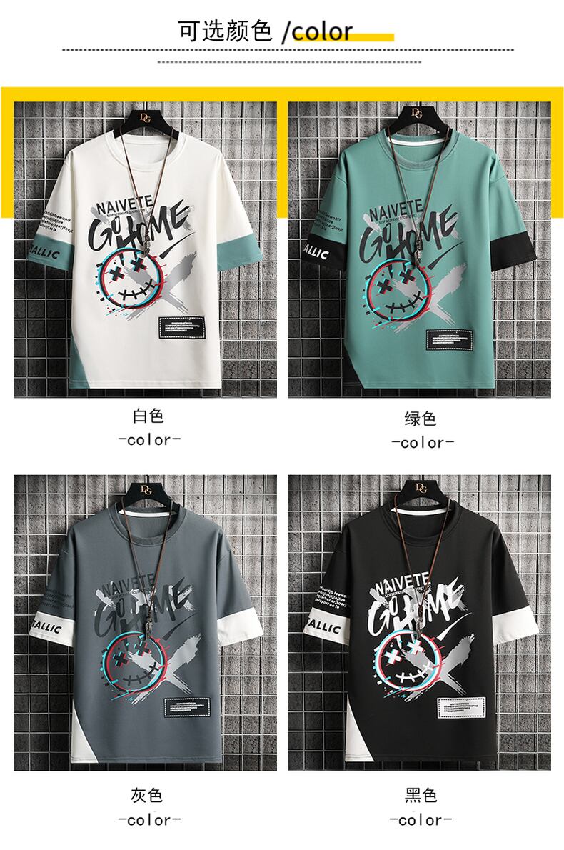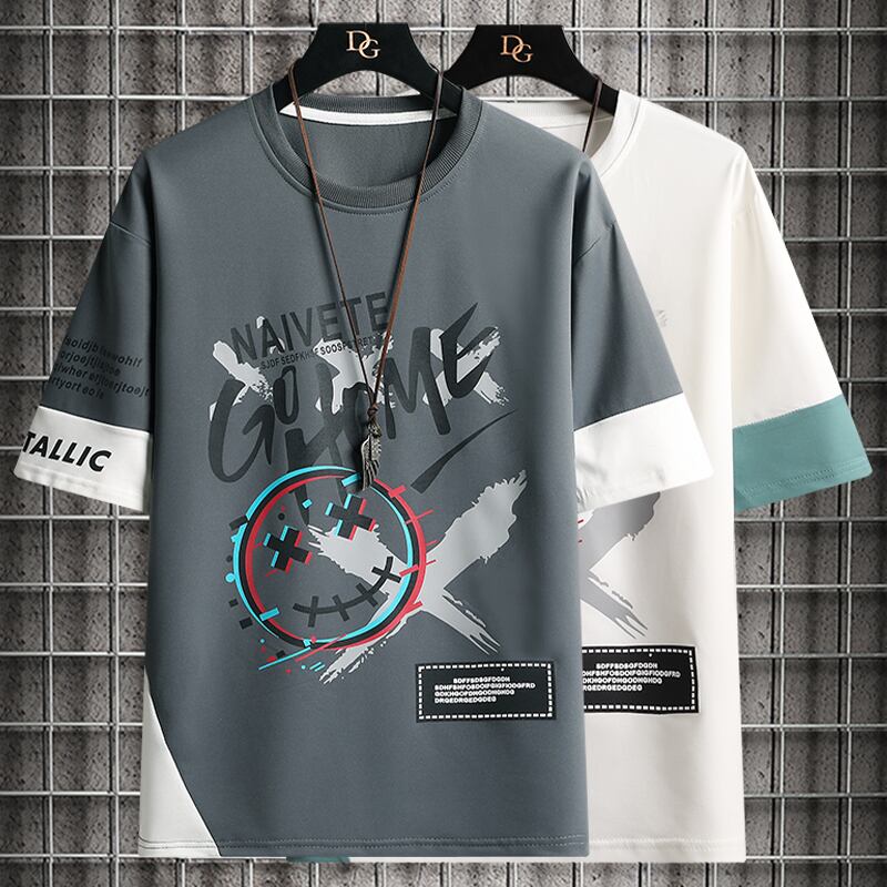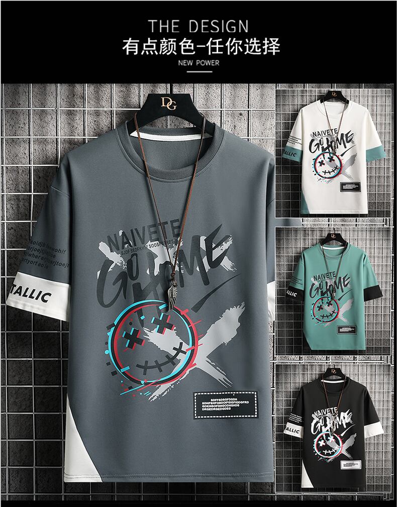 Short-sleeved men's tide brand 2022 new summer loose ice silk half-sleeved men's t-shirt printing youth top clothes サマー 夏物 シルク Tシャツ doushi85920497967