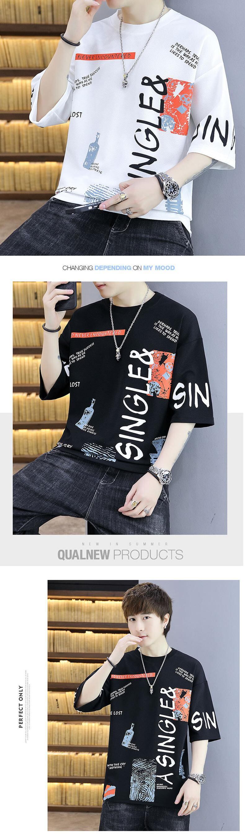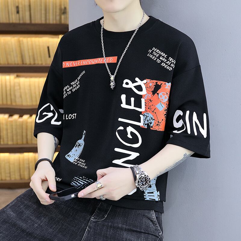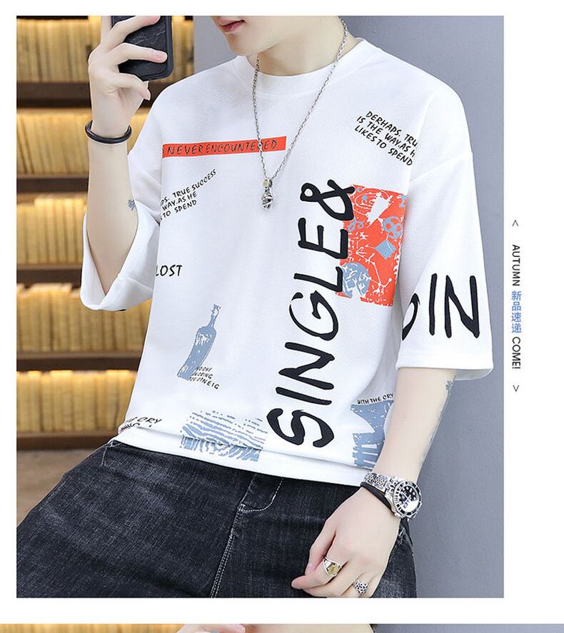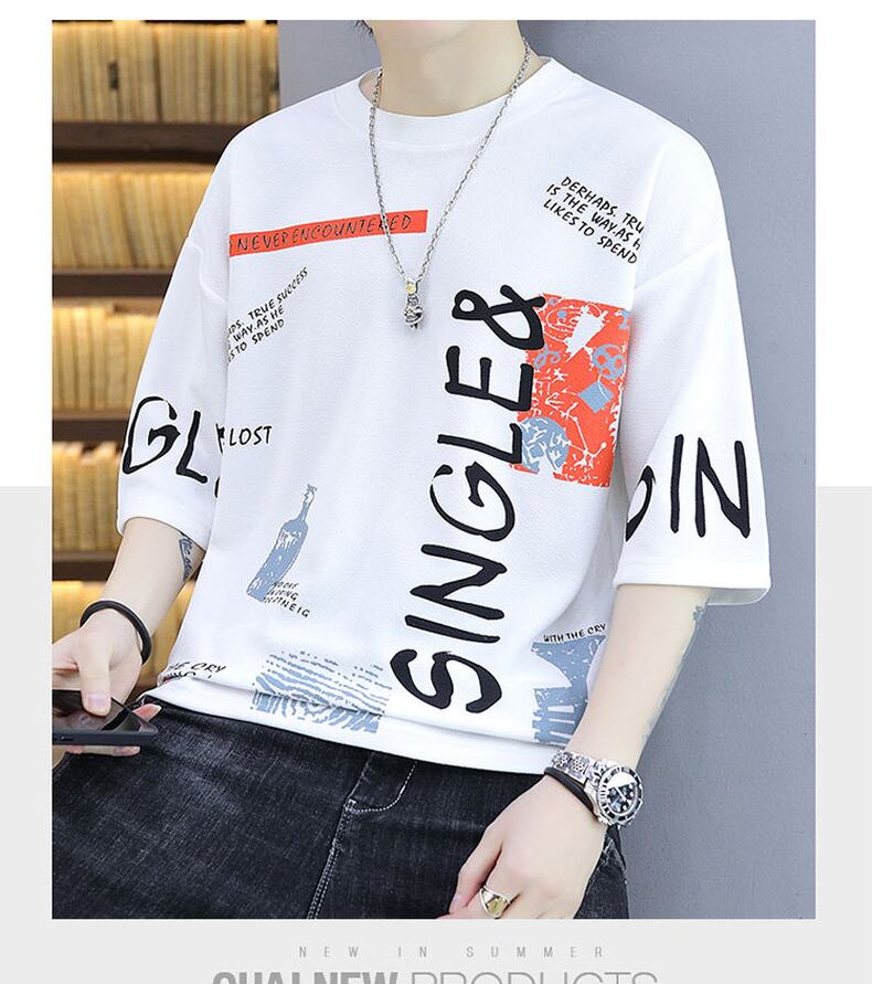 Three-quarter sleeve clothes men's version of the trend 2022 summer new mid-sleeve short-sleeved T-shirt men's tide brand student top サマー 夏物 Tシャツ doushi59840720415