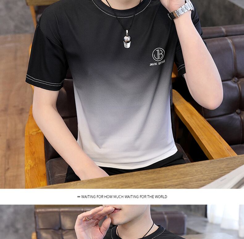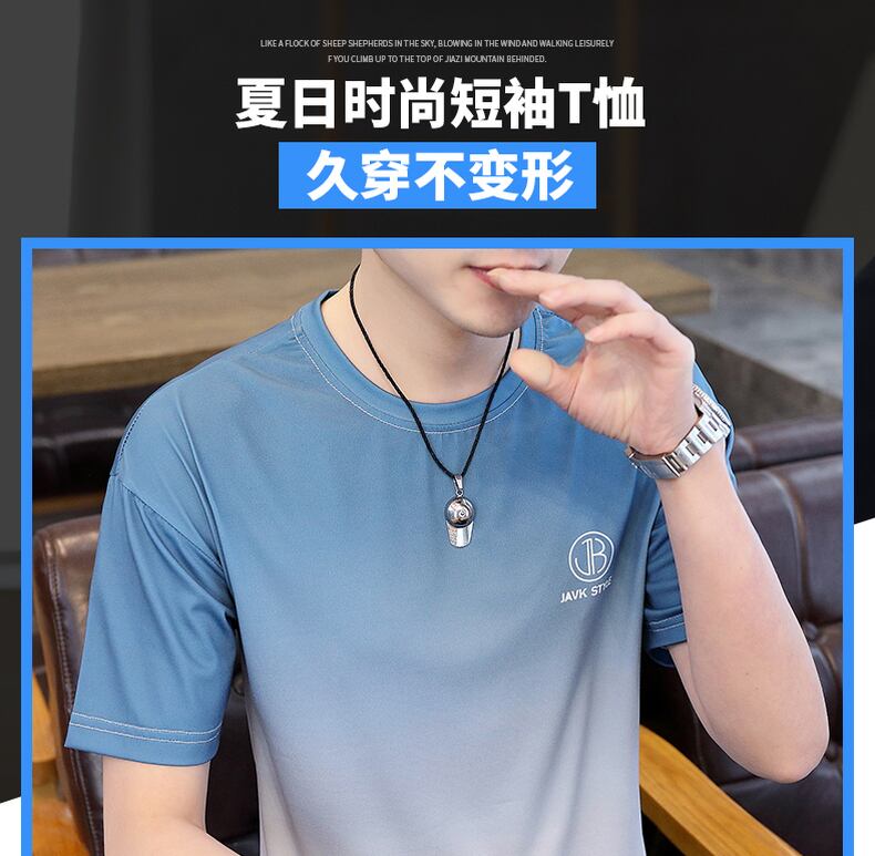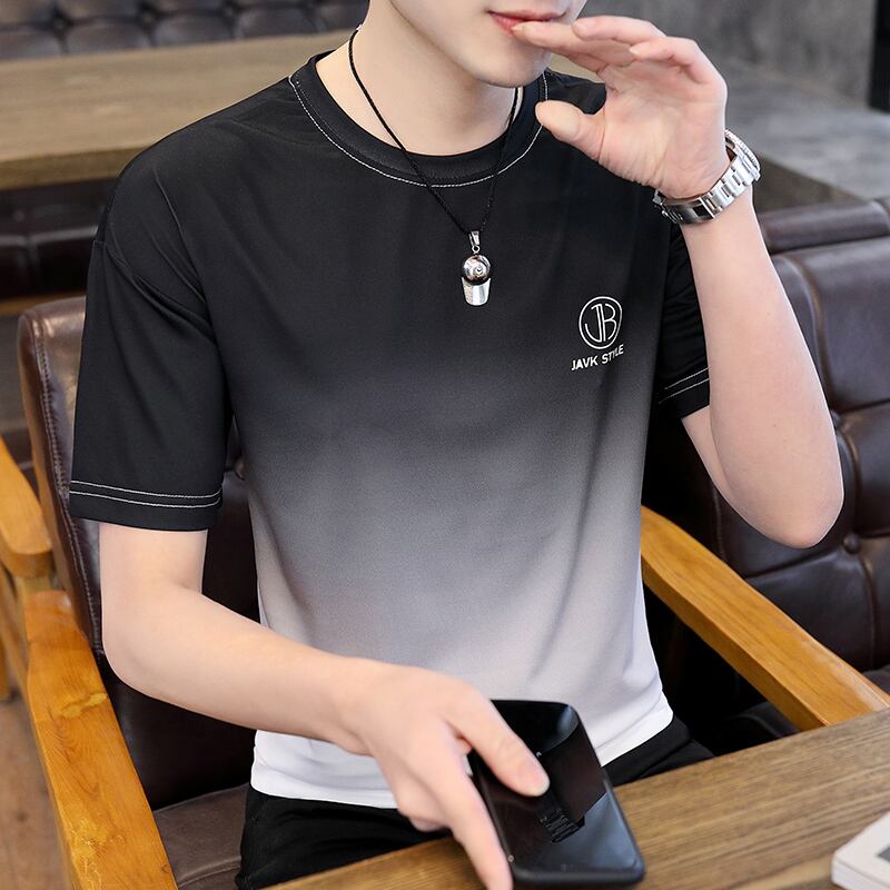Gradient ice silk short-sleeved T-shirt men's 2022 summer trend loose summer men's half-sleeve slippery material quick-drying clothes サマー 夏物 シルク Tシャツ doushi15908982702