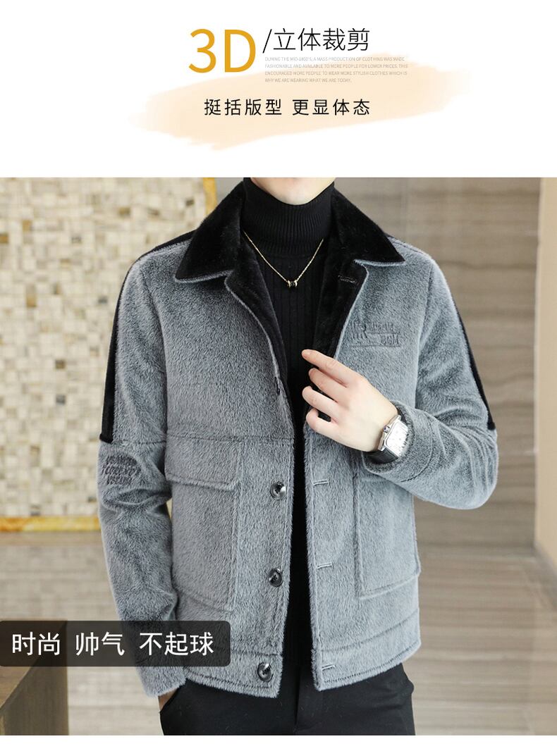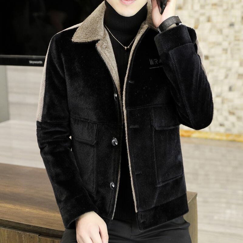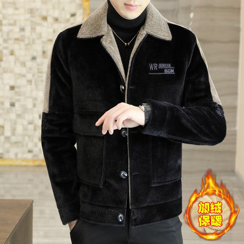 Plus velvet thick coat version ruffian handsome men's casual woolen jacket autumn and winter ins mink velvet men's coat カジュアル オータム 秋物 ウィンター 冬物 doushi38343591444