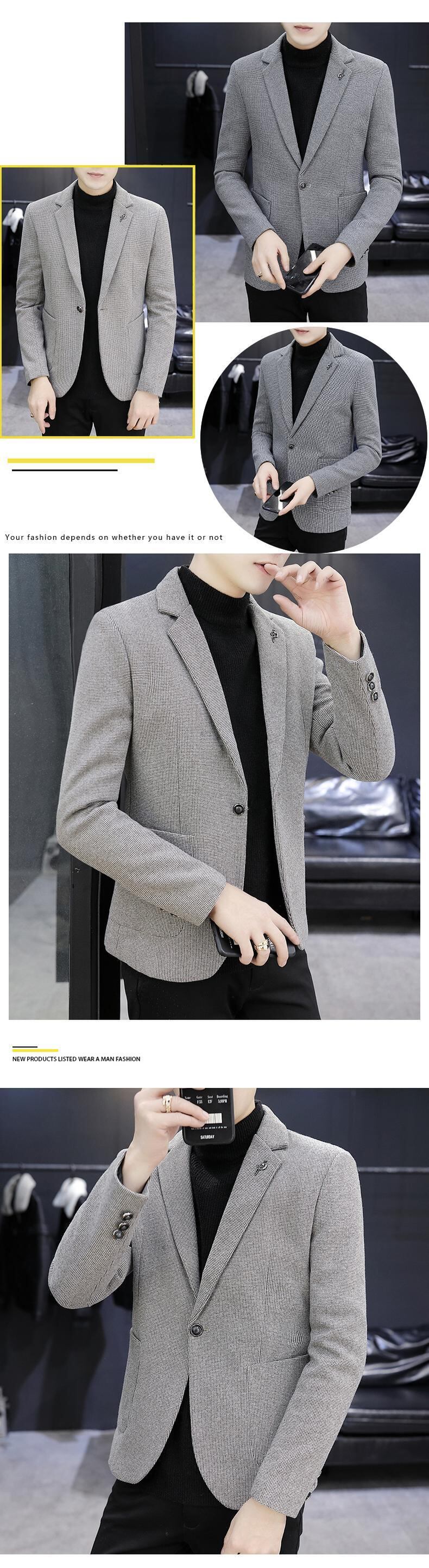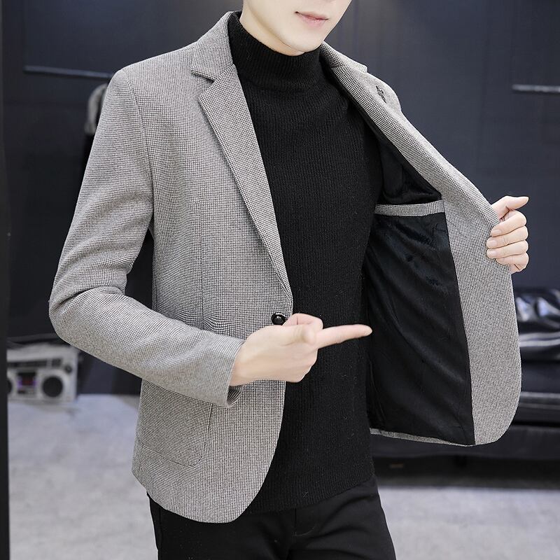 Spring and Autumn Woolen Suit Men's Jacket Spring Single West Slim Top Trendy Handsome Small Suit スプリング 春物 オータム 秋物 スリム doushi81971871854