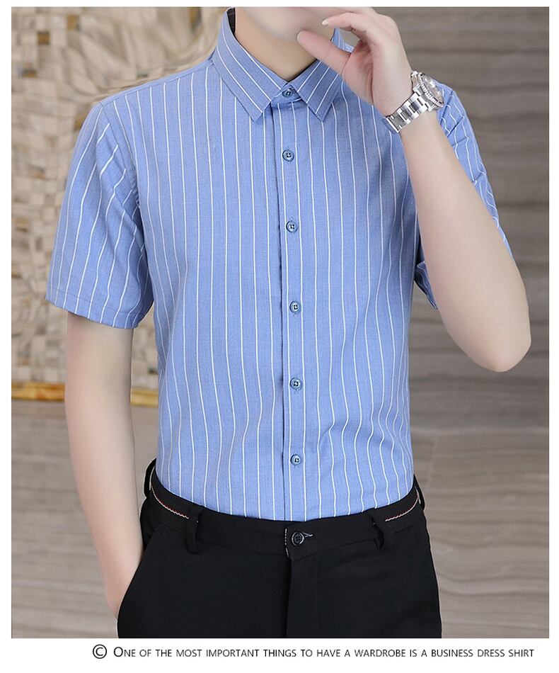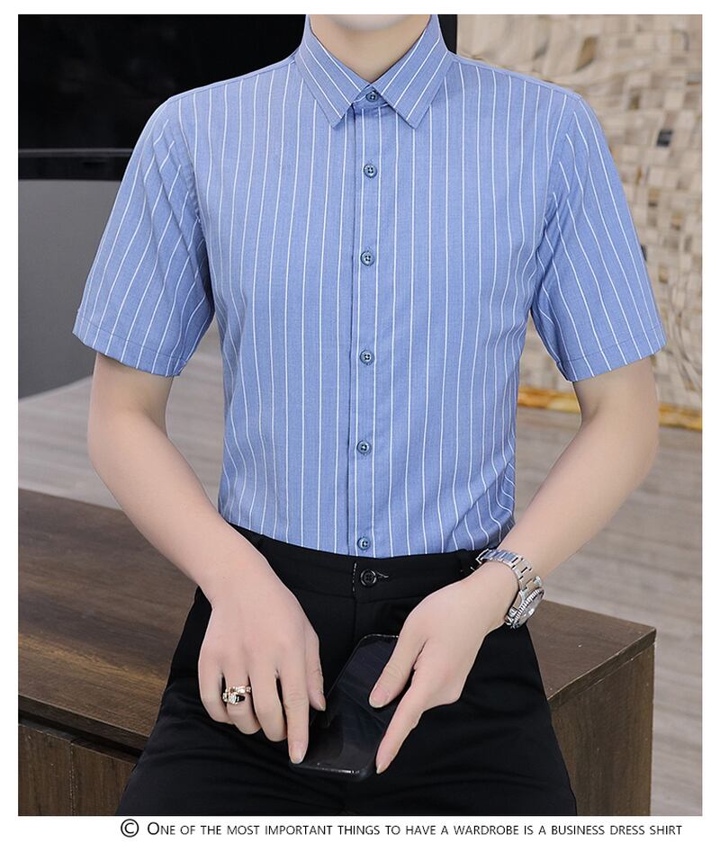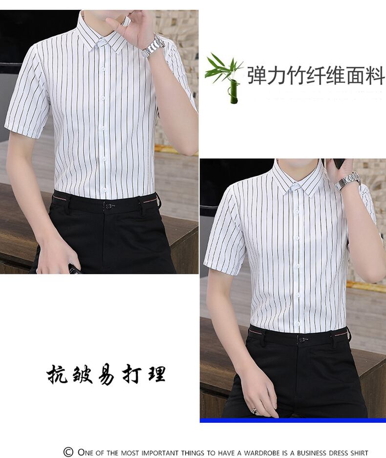 -quality shirt men's anti-wrinkle non-iron slim-fit shirt summer new light business casual short-sleeved striped shirt カジュアル サマー 夏物 ストライプ doushi8115621761
