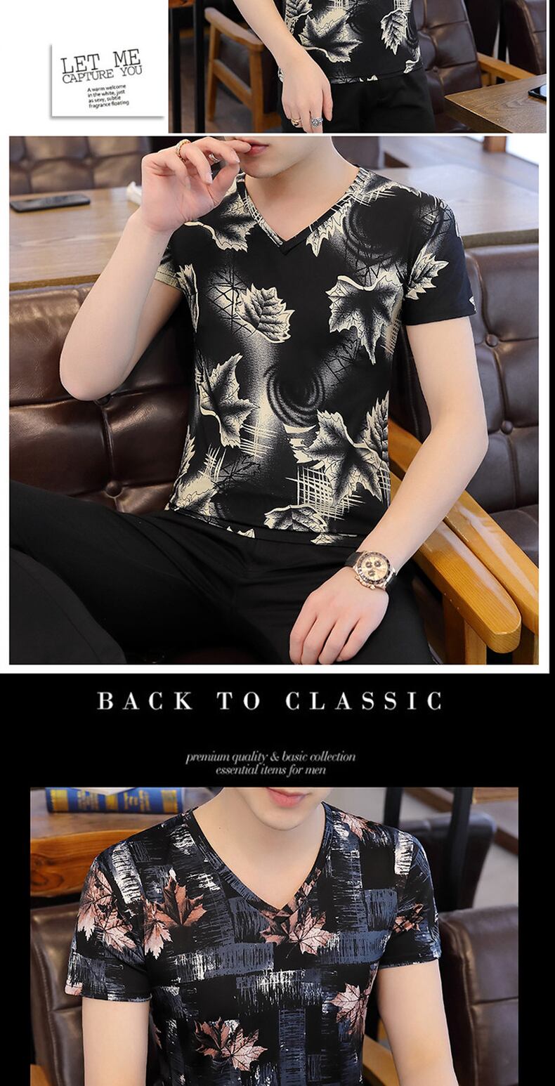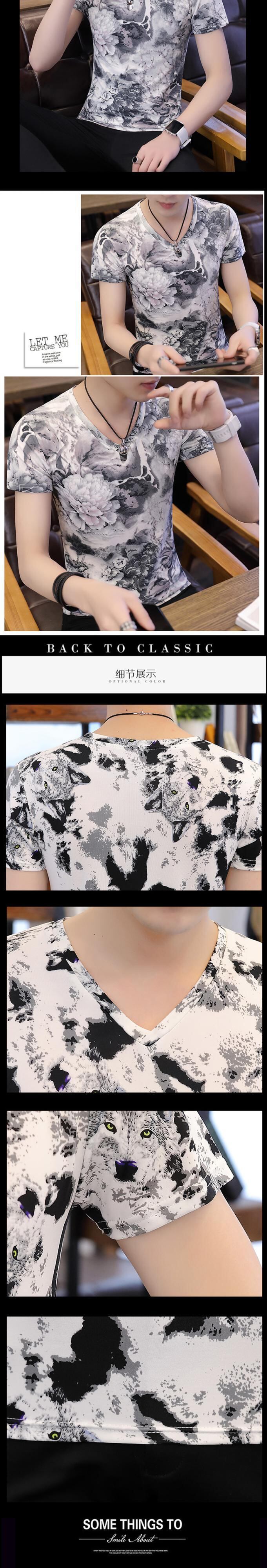 Short-sleeved T-shirt men's summer V-neck sweater casual half-sleeved big children's cartoon sweater personality small shirt summer ice silk men's clothing カジュアル サマー 夏物 Vネック シルク Tシャツ doushi61639043467