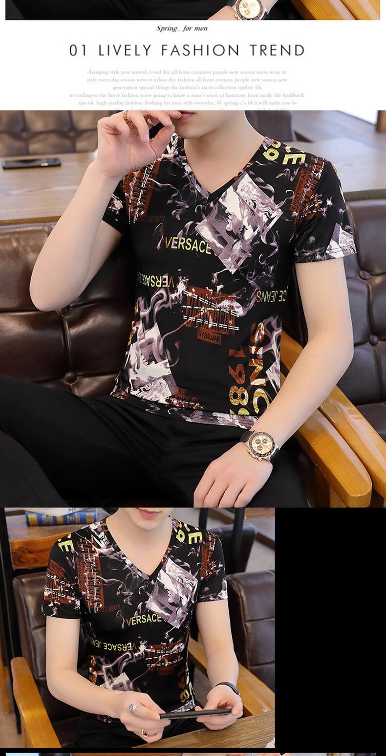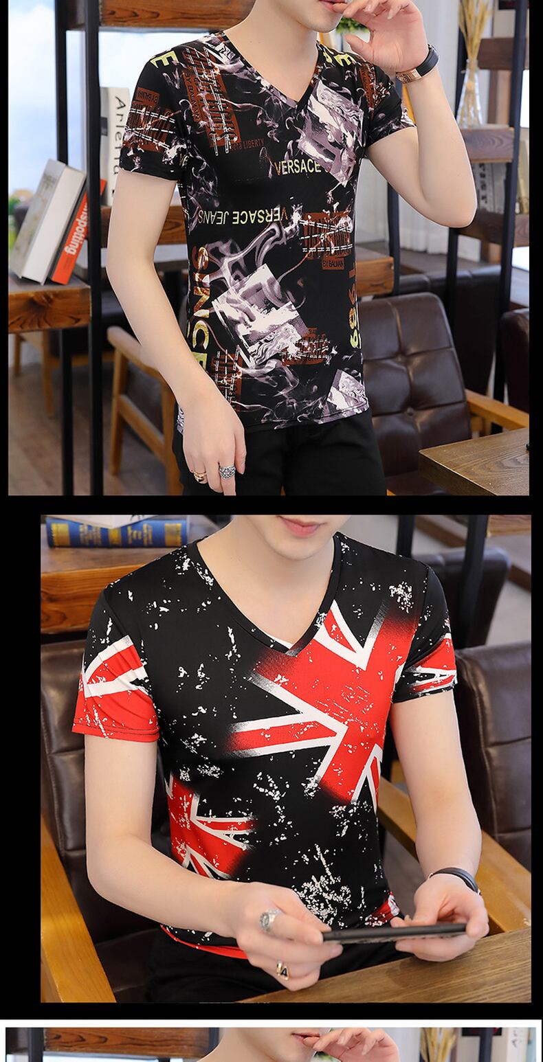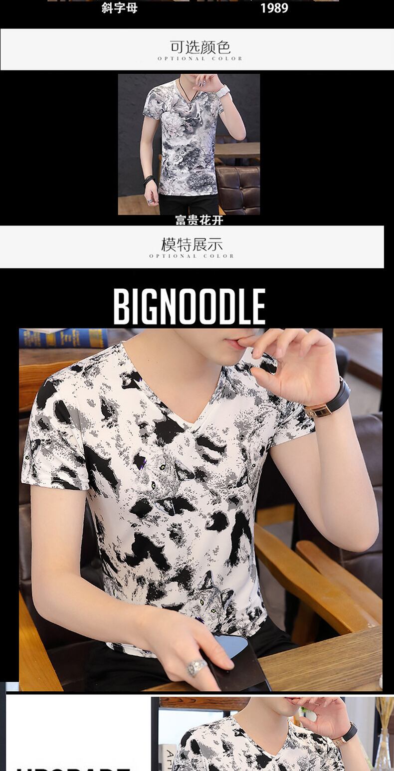 Short-sleeved t-shirt men's summer thin V-neck ice silk bottoming shirt men's personality version trend slim teen shirt サマー 夏物 Vネック スリム シルク Tシャツ doushi85105062806