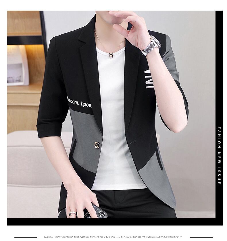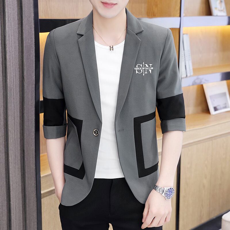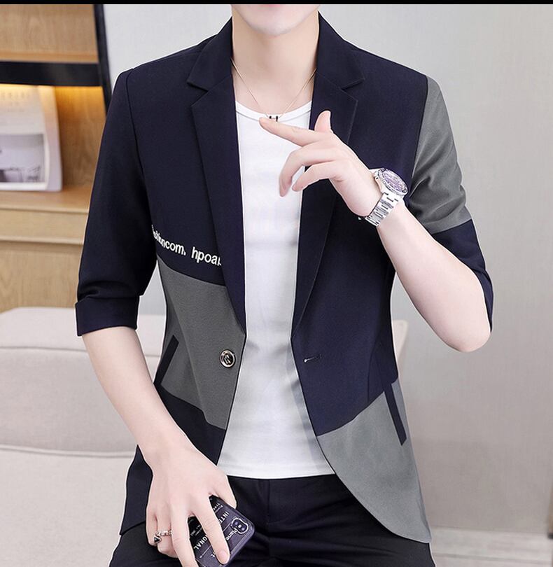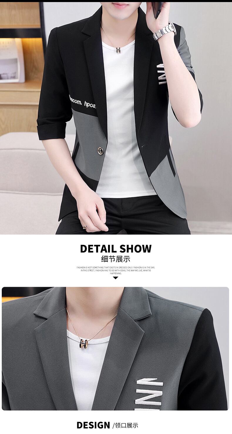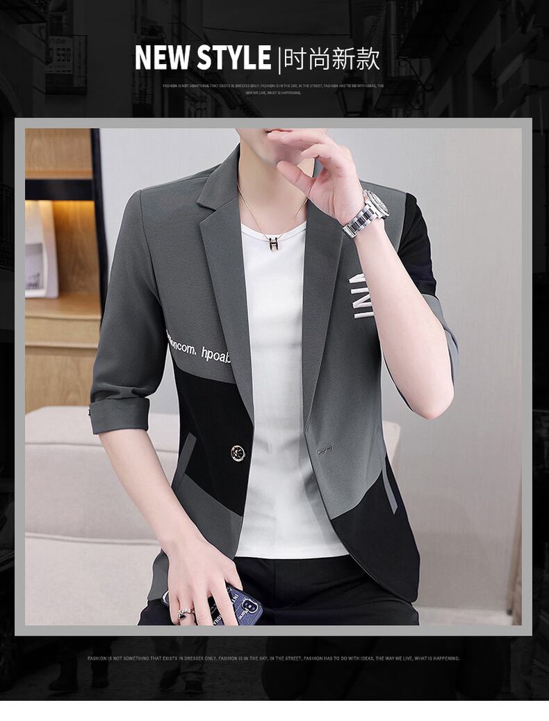Tide brand stitching mid-sleeve suit men's thin summer version slim three-quarter sleeve jacket handsome casual suit suit カジュアル サマー 夏物 スリム ステッチ doushi93127258275