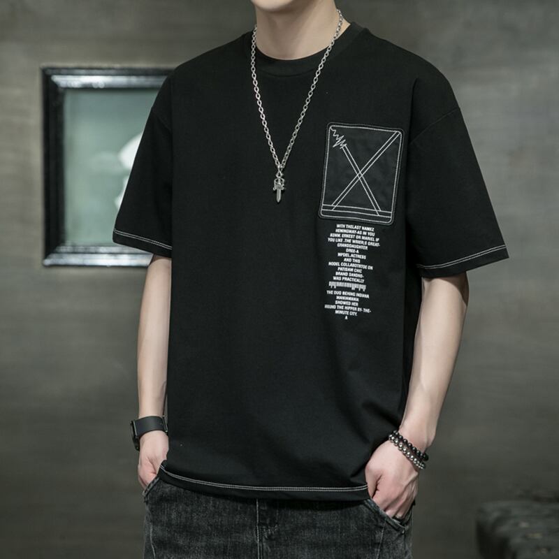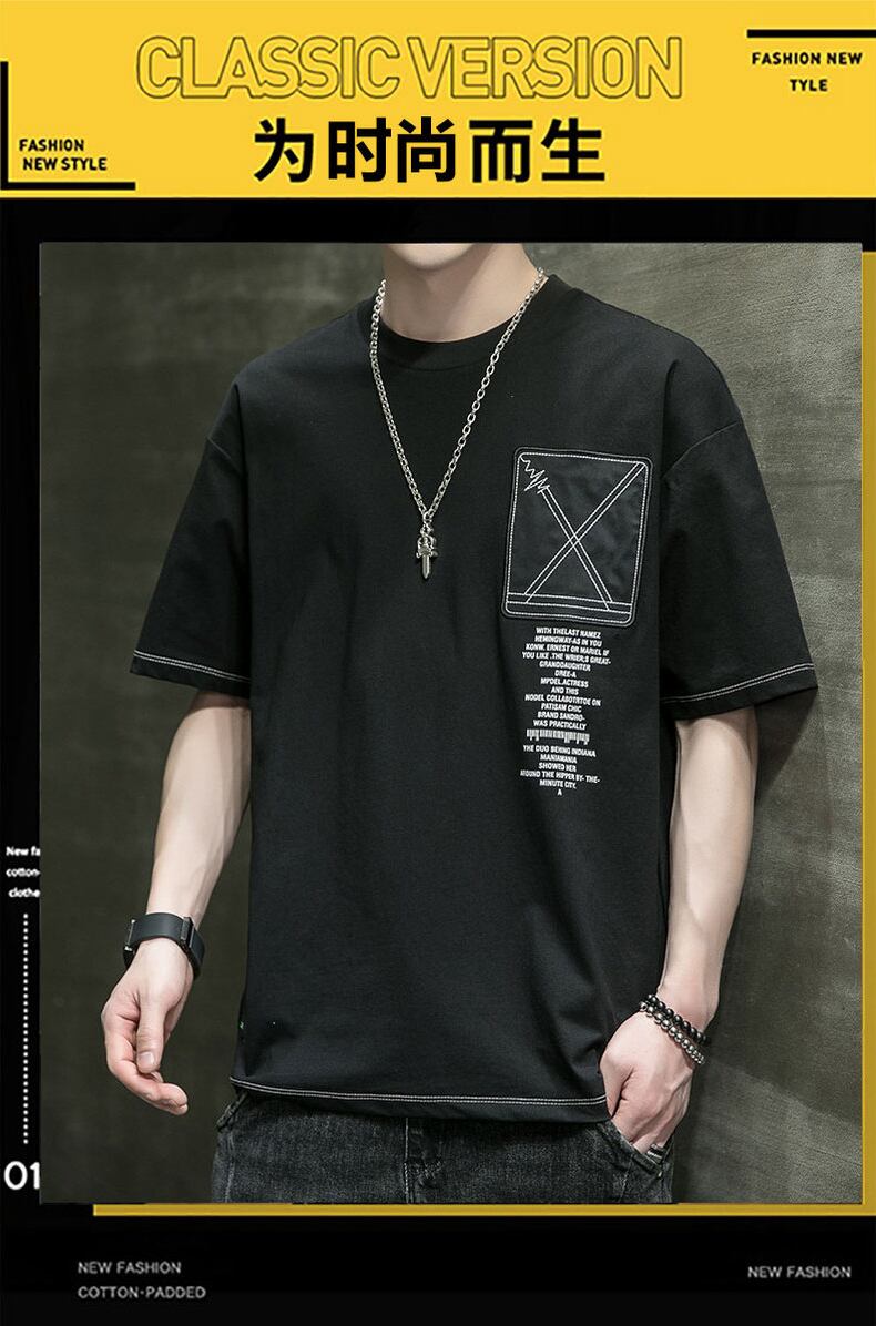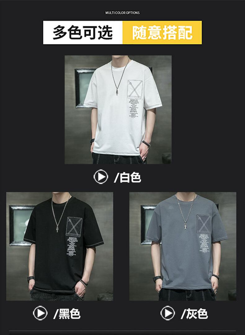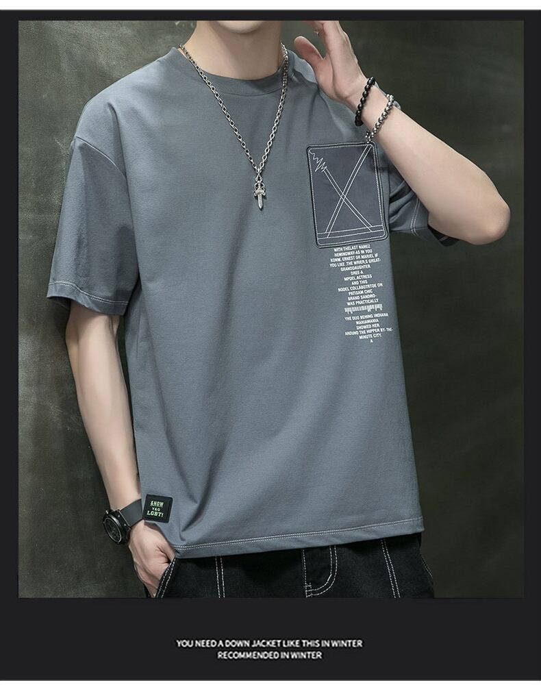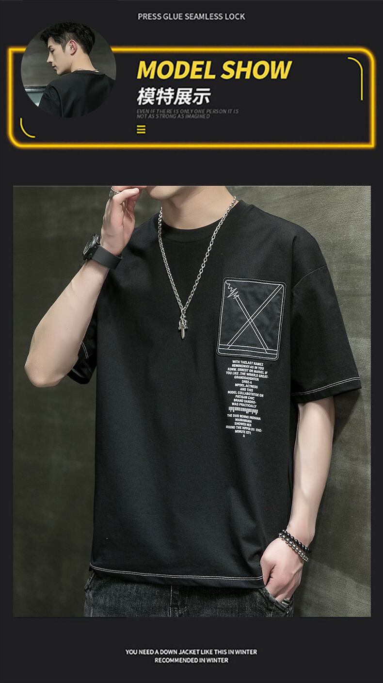 2022 new short-sleeved t-shirt men's fashion printing round neck loose half-sleeve t-shirt simple and versatile men's top Oネック Tシャツ doushi42092749158