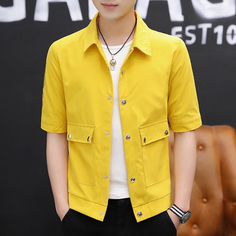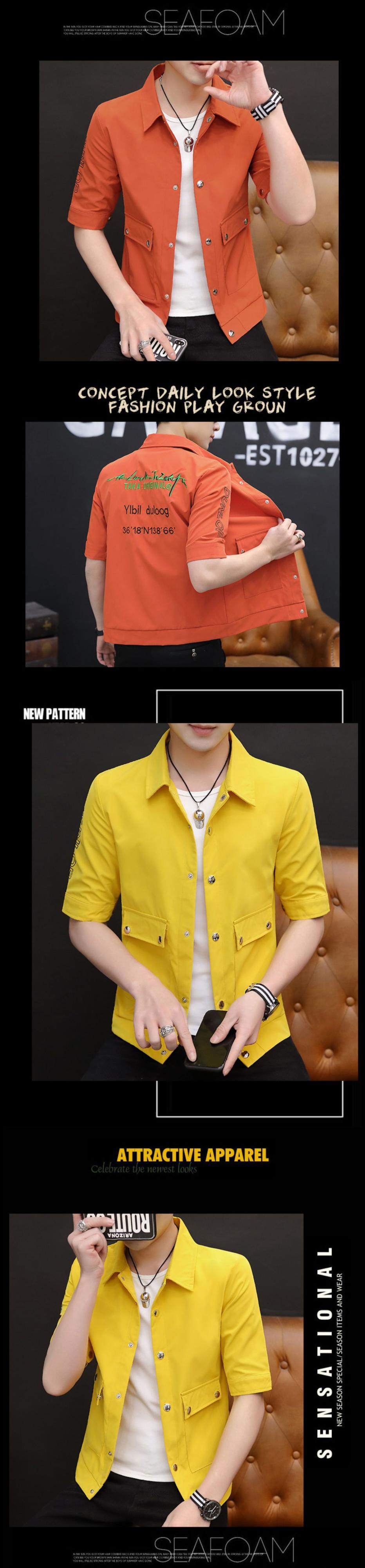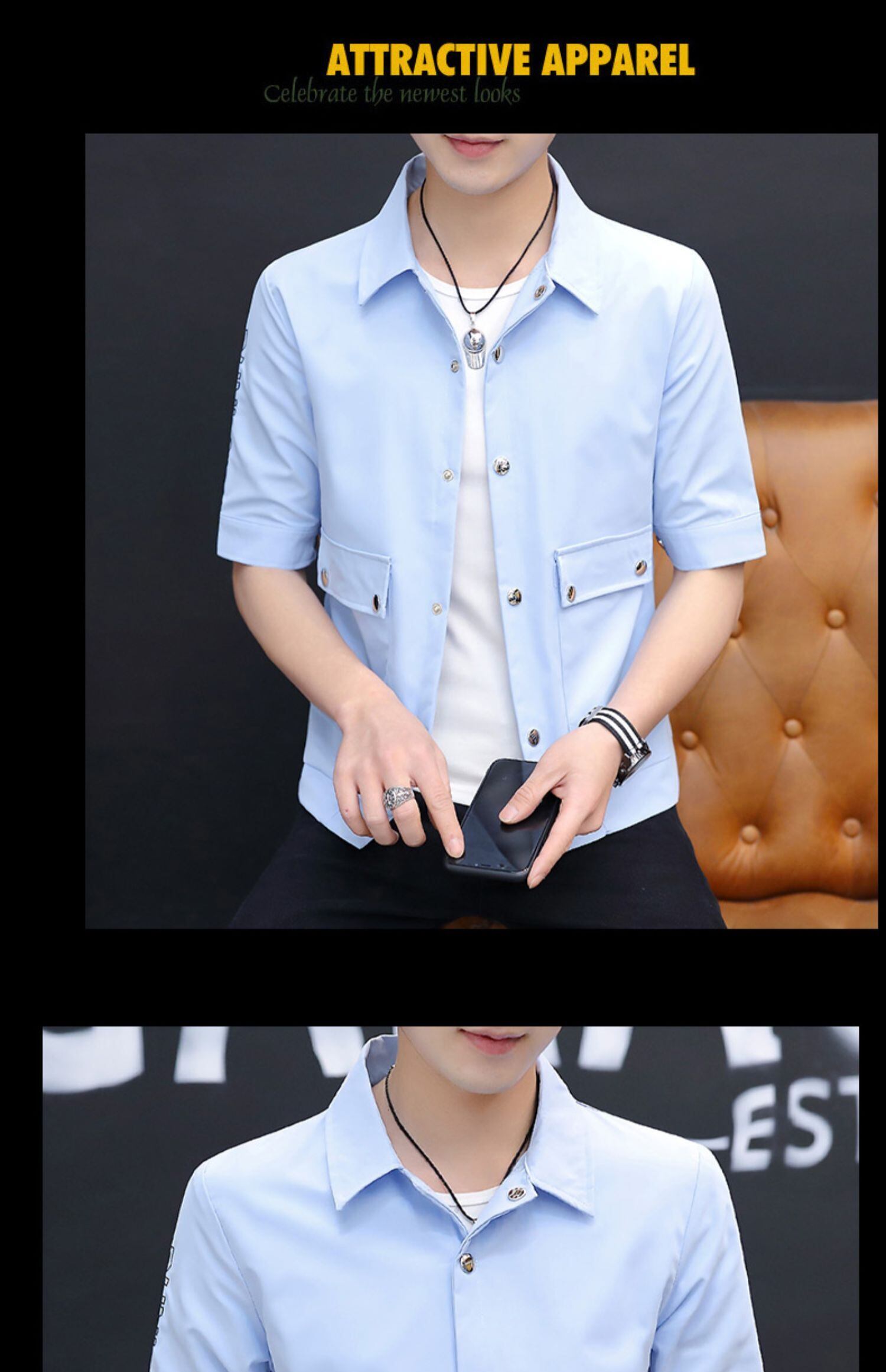 Short-sleeved shirt men's version of the trend spirit boy ruffian handsome shirt jacket men's summer thin section mid-sleeve top clothes サマー 夏物 doushi50906107044