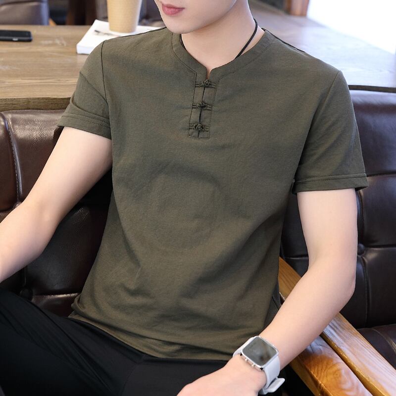 Men's Chinese style linen short-sleeved t-shirt version of the retro youth half-sleeved bottoming clothes trendy men's cotton and linen t-shirt コットン レトロ Tシャツ doushi54361013814