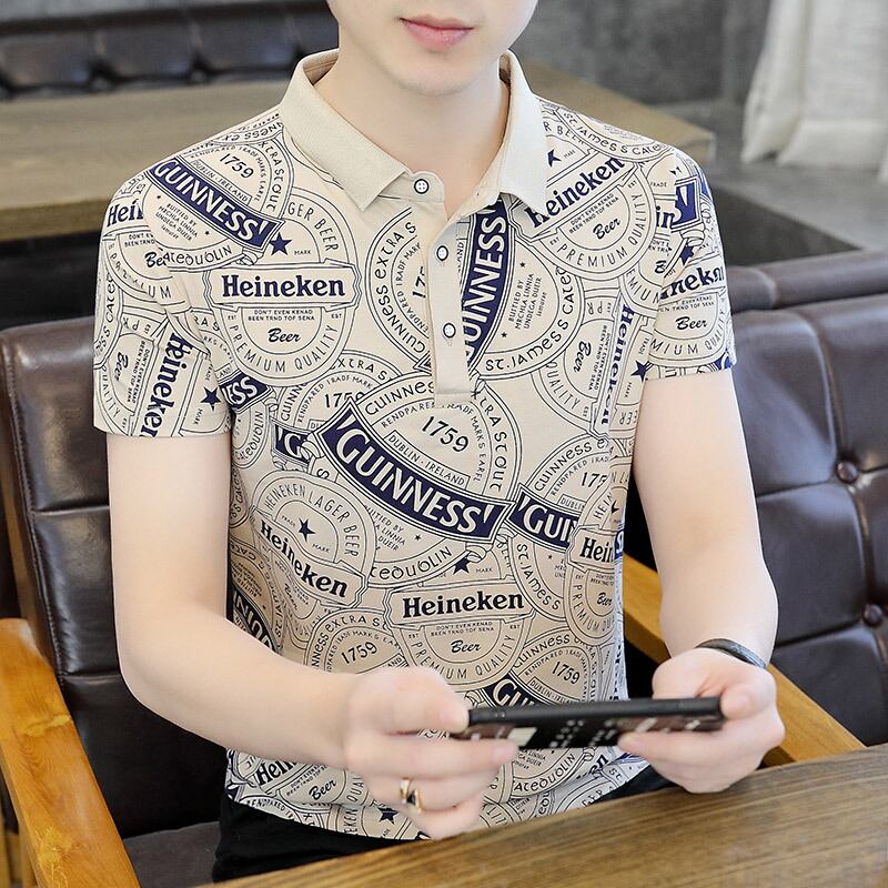 Short-sleeved t-shirt men's tide brand 2022 new printed top clothes summer men's lapel POLO shirt simple half sleeves 半袖 ハーフスリーブ プリント サマー 夏物 Tシャツ doushi70719015039
