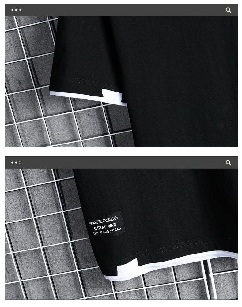 Guochao short-sleeved t-shirt men's tide brand trend summer new fake two-piece cotton half-sleeved men's t-shirt top clothes コットン サマー 夏物 Tシャツ doushi93817251525