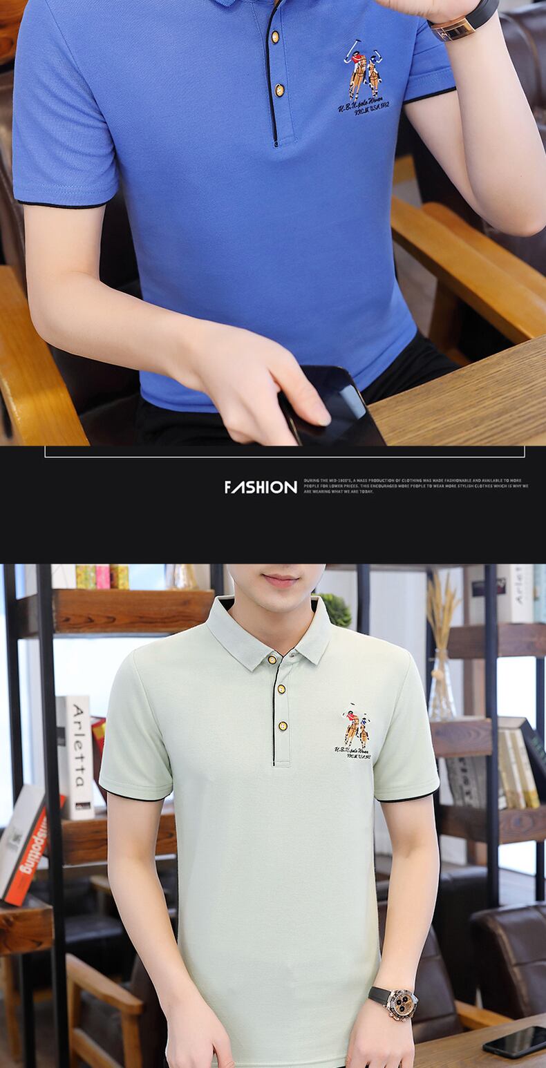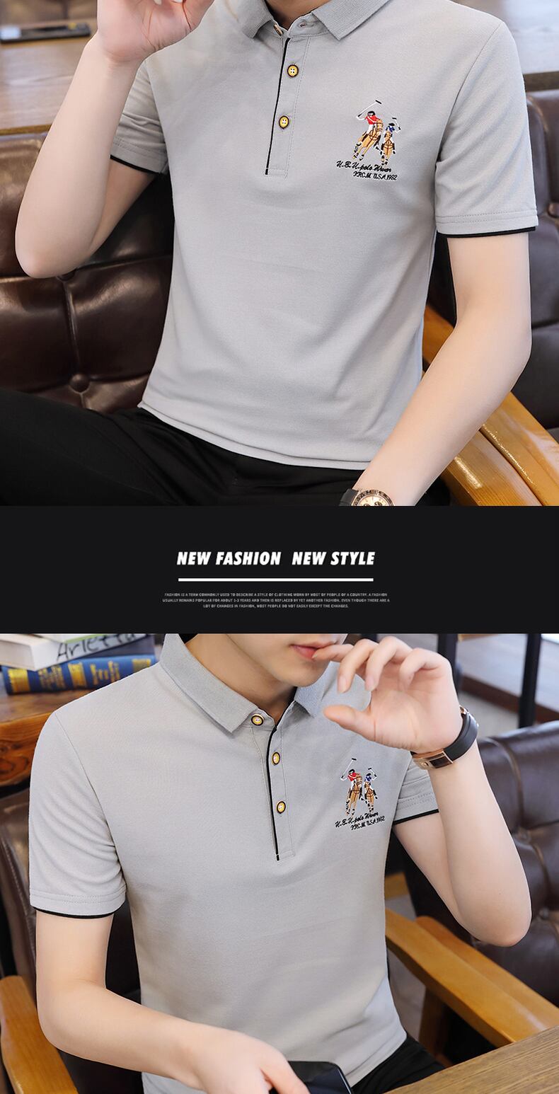 Youth summer short-sleeved t-shirt men's trend lapel POLO shirt men's cotton ice silk thin t-shirt top clothes コットン サマー 夏物 シルク Tシャツ doushi71256349350