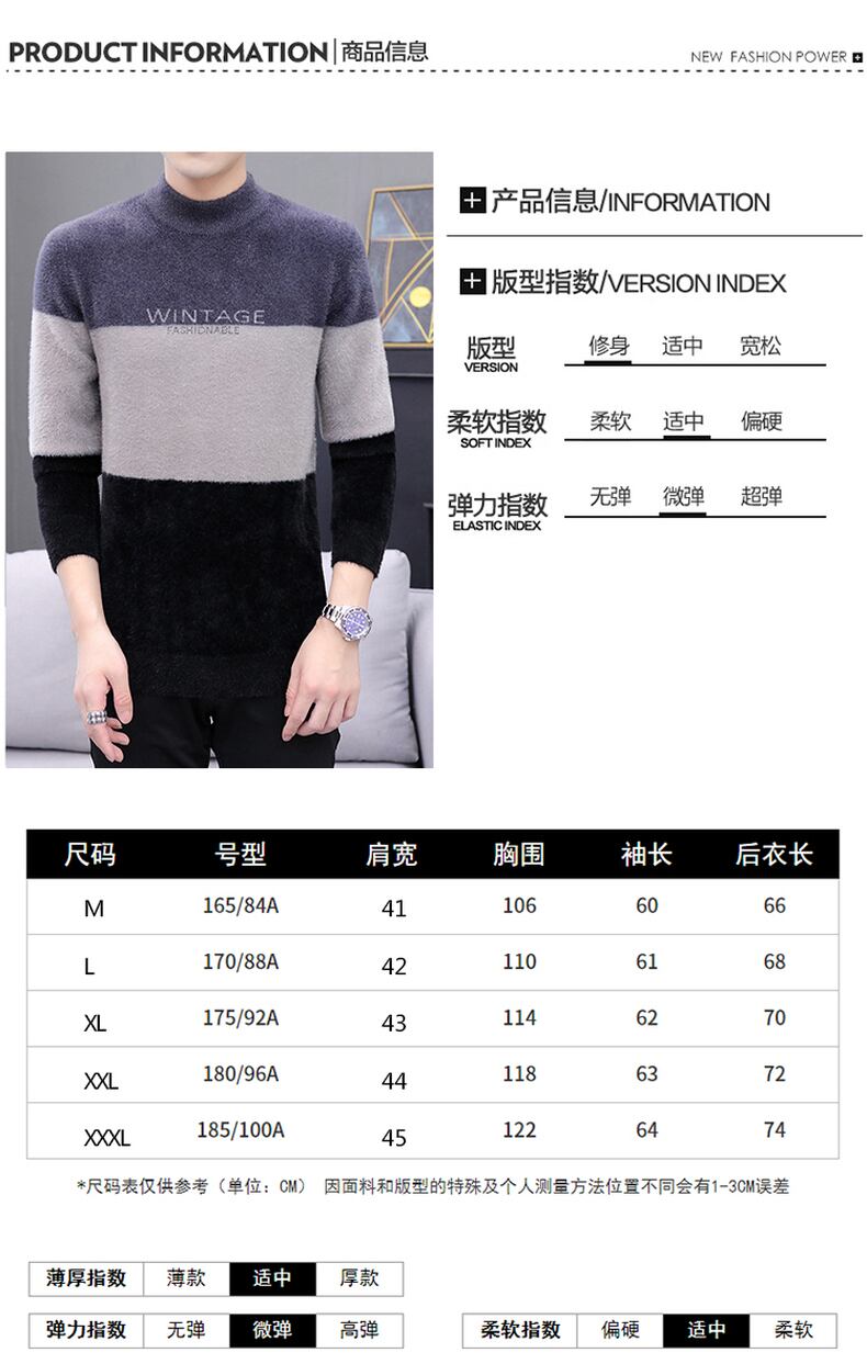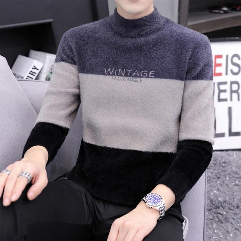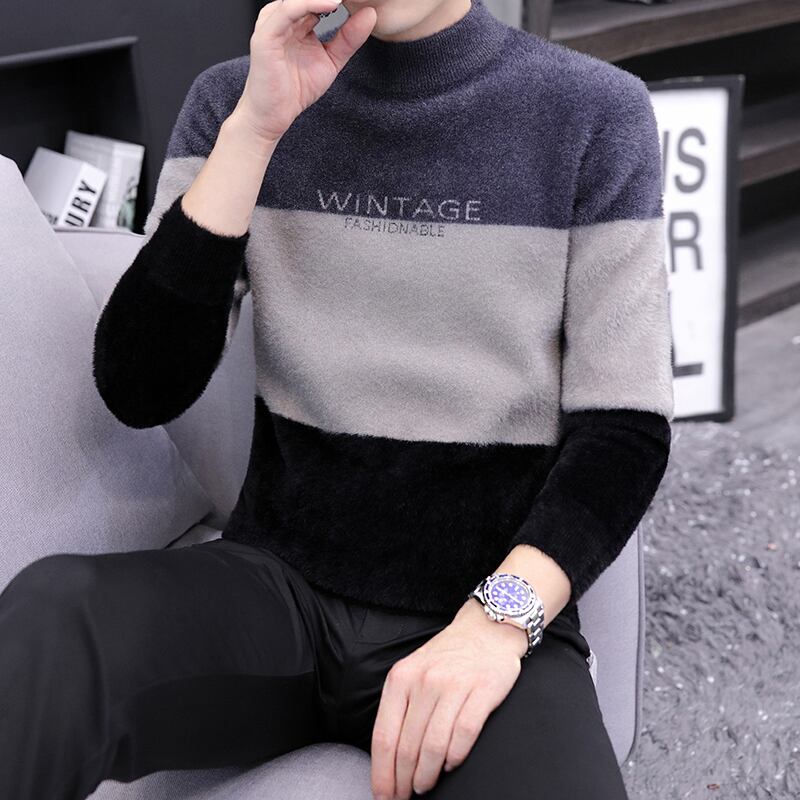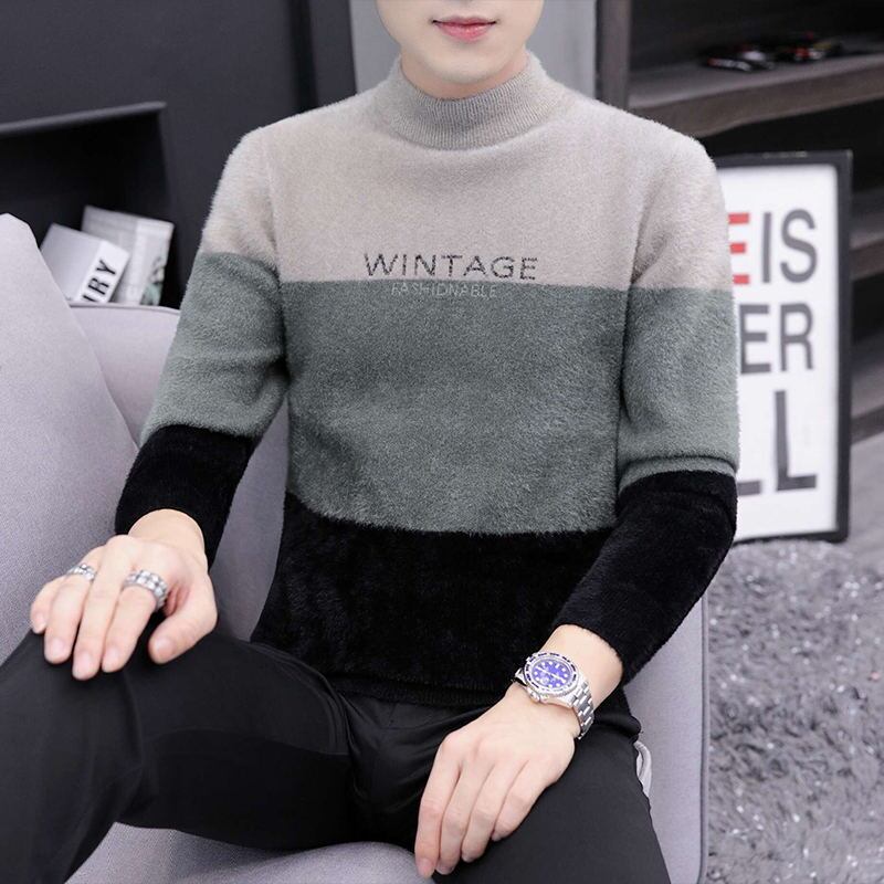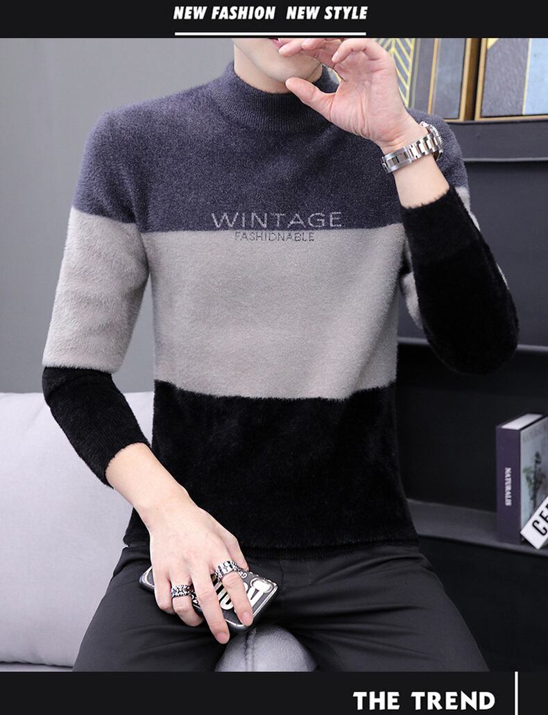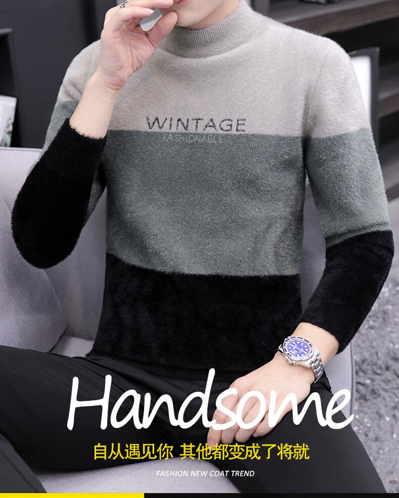 Mink velvet half turtleneck sweater men's bottoming shirt 2022 autumn and winter plus velvet thickened mid-neck warm sweater オータム 秋物 ウィンター 冬物 doushi77378762959