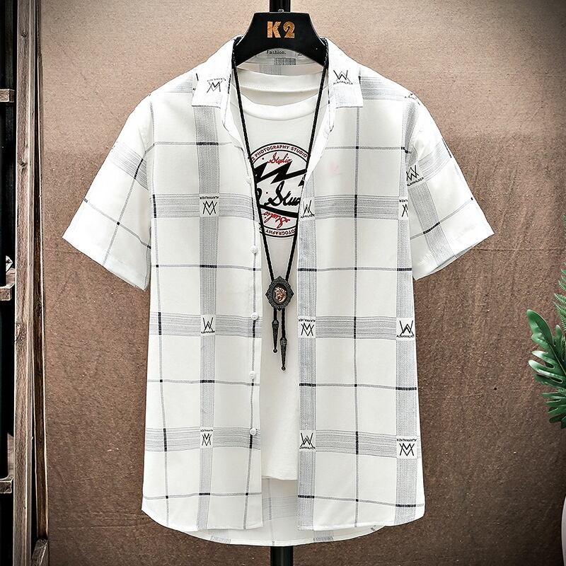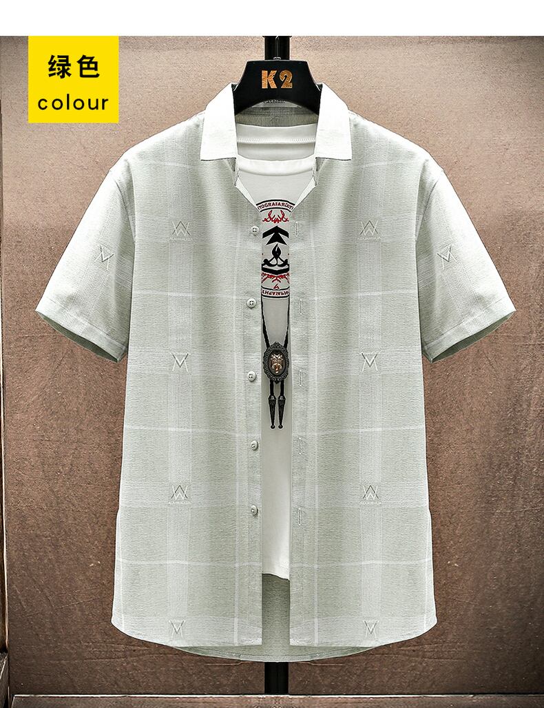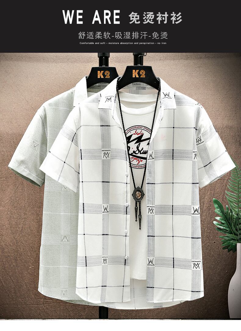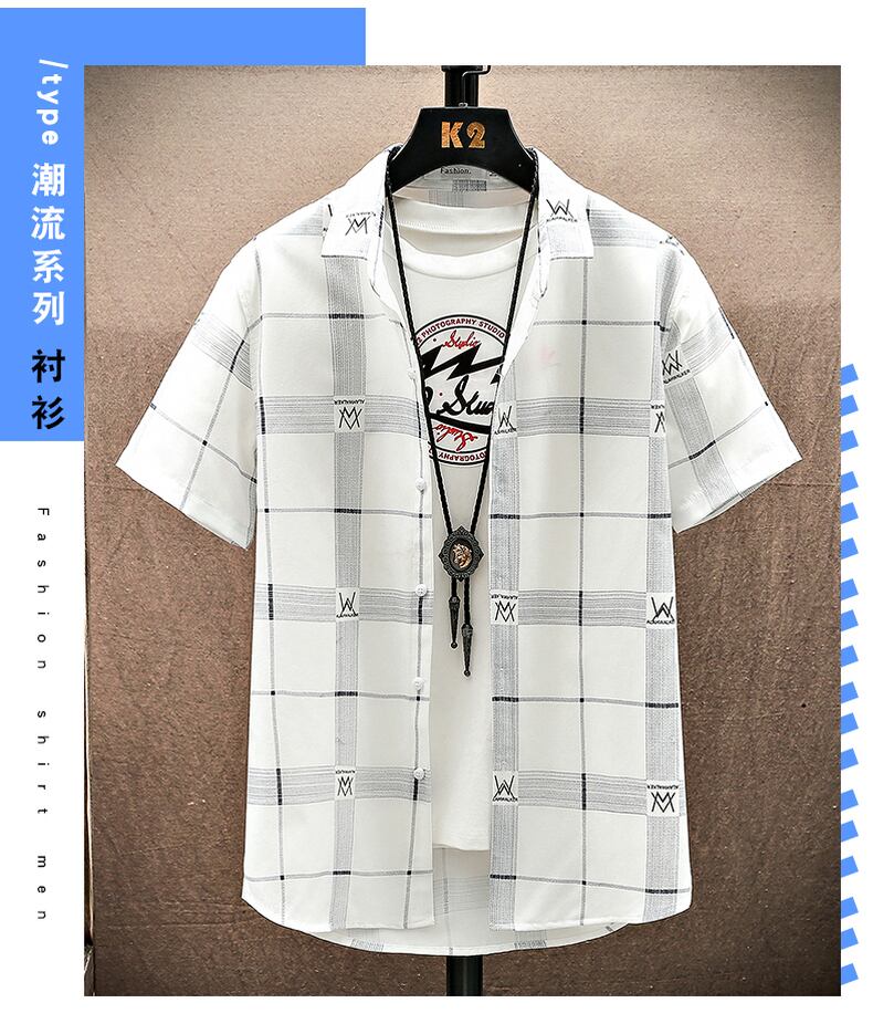 Plaid short-sleeved shirt men's summer new casual men's jacket tide brand handsome striped shirt men's clothes カジュアル サマー 夏物 ストライプ doushi64378485687