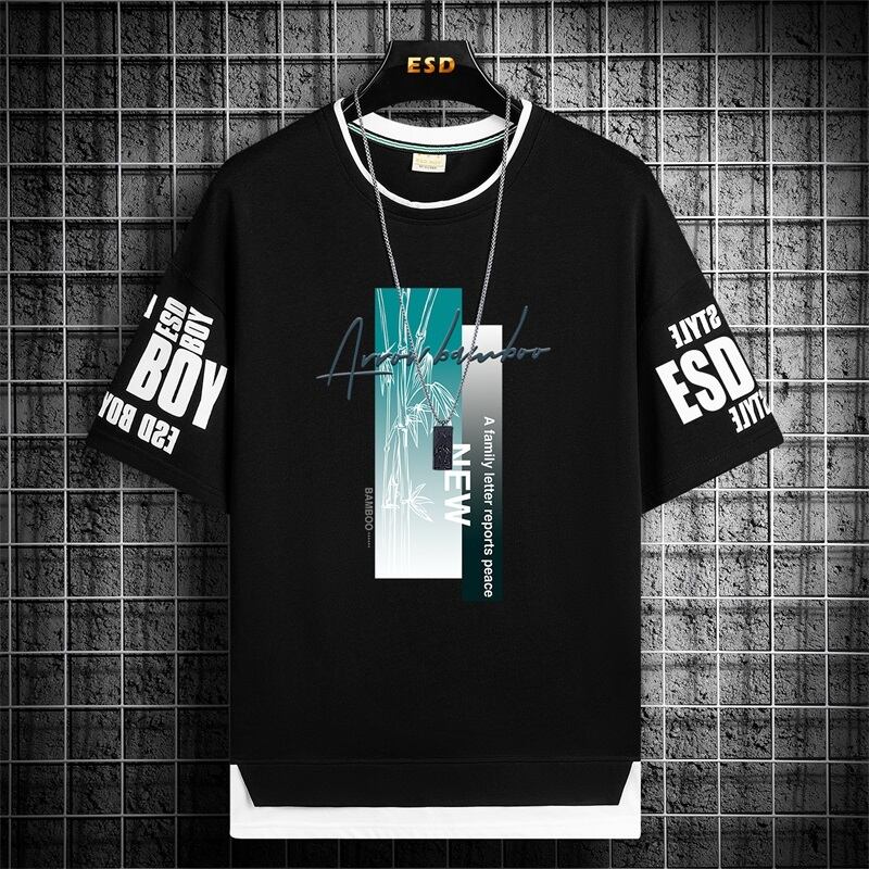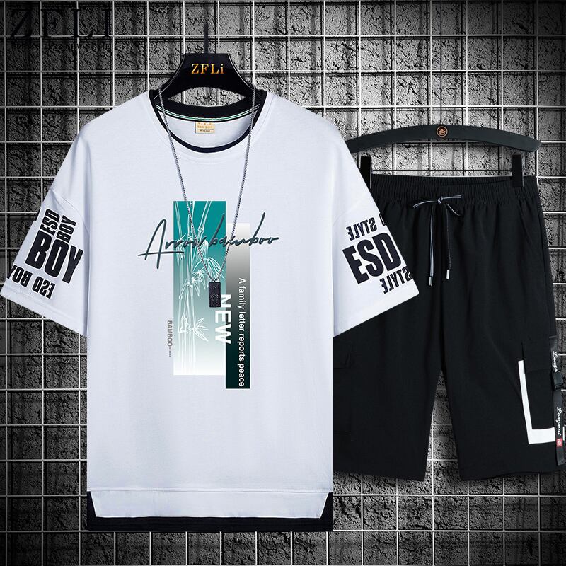 Short-sleeved suit men's tide brand casual sports cotton t-shirt men's ice silk half-sleeve t-shirt men's set of matching clothes コットン カジュアル シルク Tシャツ doushi21102119395